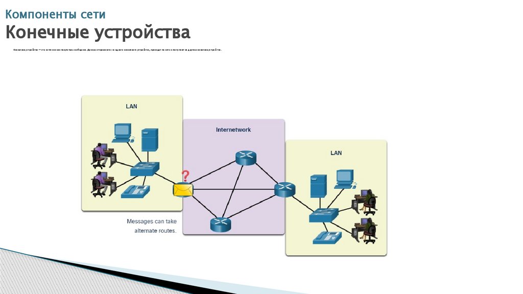 Оконечное устройство — это источник или получатель сообщения. Данные отправляются из одного оконечного устройства, проходят по сети и поступают на другое оконечное устройство.