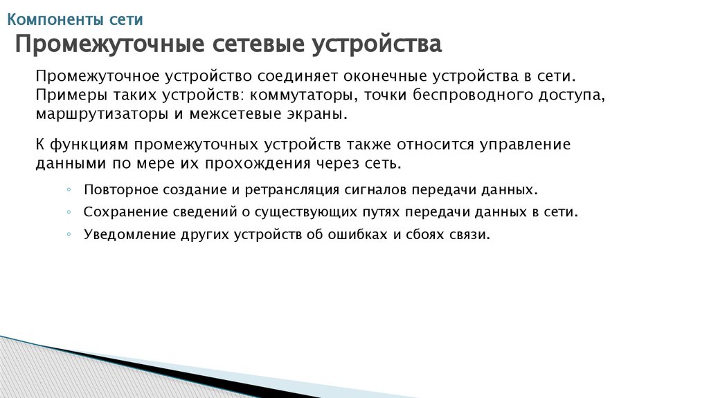 Промежуточное устройство соединяет оконечные устройства в сети.