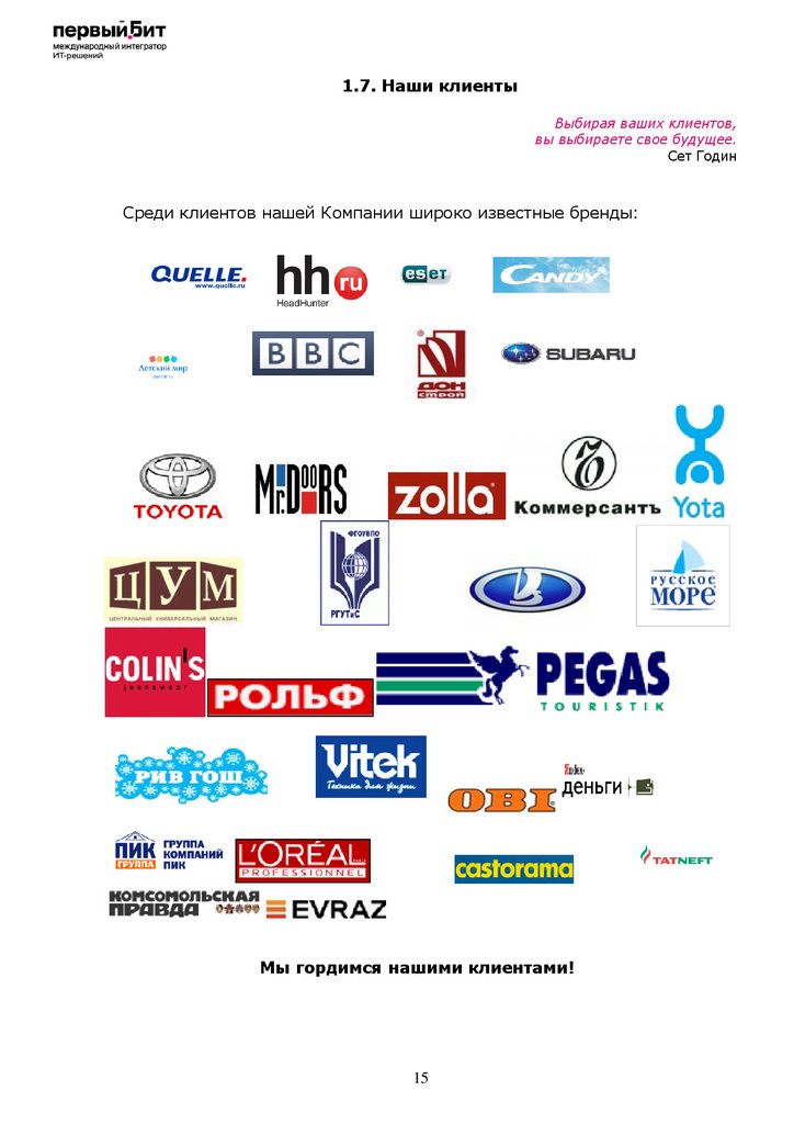 1.7 Наши клиенты ……………………………………………………………….……..15