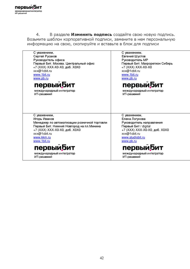 информацию на свою, скопируйте и вставьте в блок для подписи