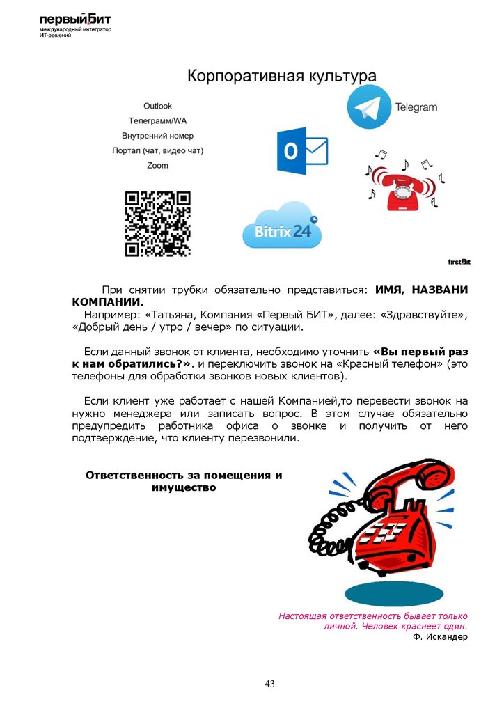 Каждый сотрудник несет ответственность за имущество, находящееся вофисе и на его рабочем месте.