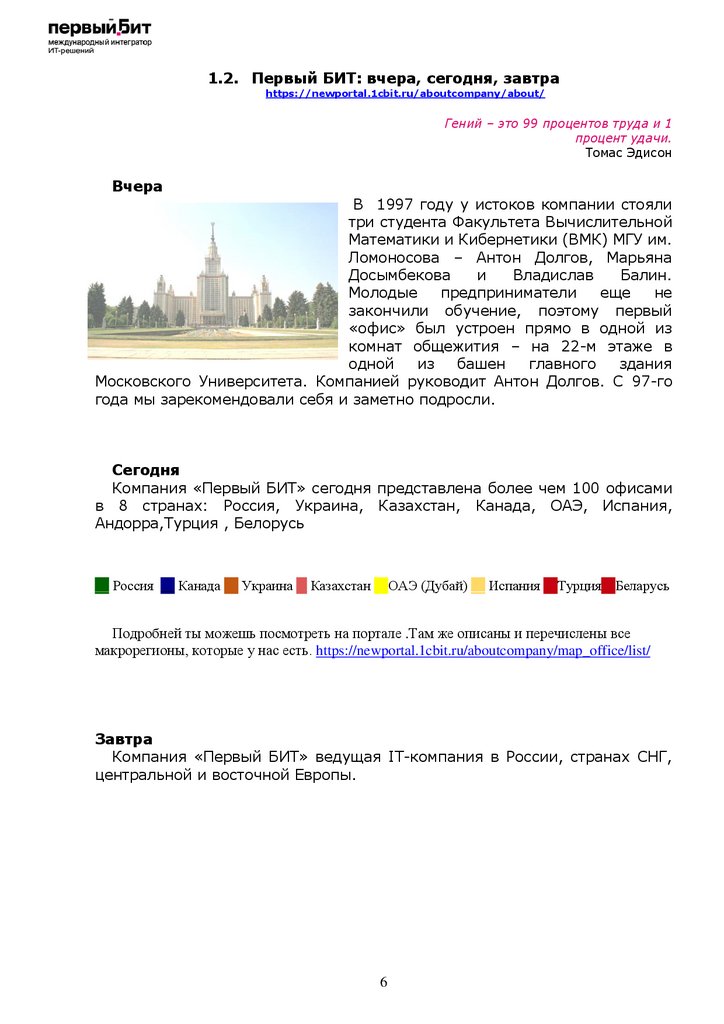 1.3 Первый Бит: вчера, сегодня , завтра……………………………………7