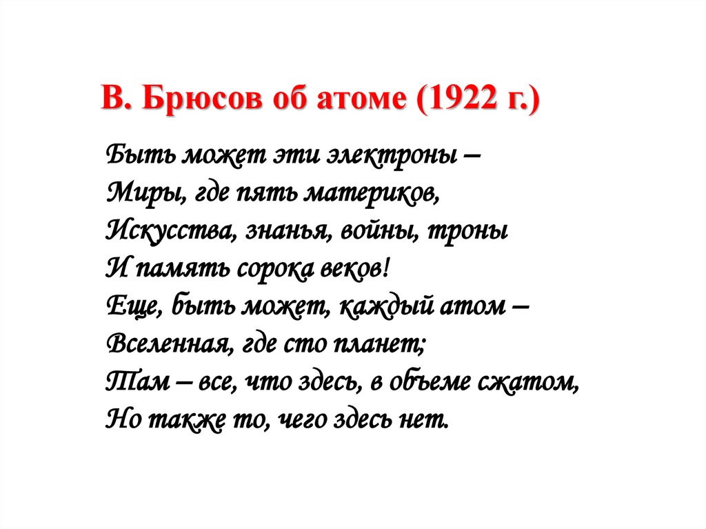 В. Брюсов об атоме (1922 г.)Быть может эти электроны –