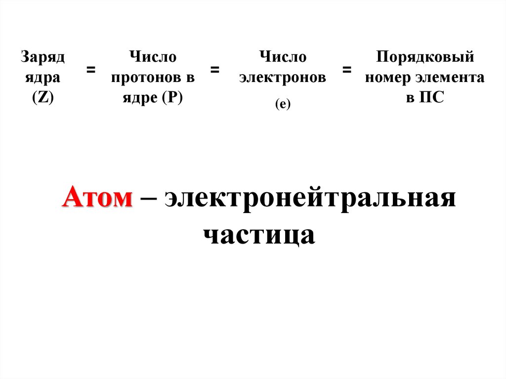 2. Заряд ядра атома (Z) = числу протонов (P)