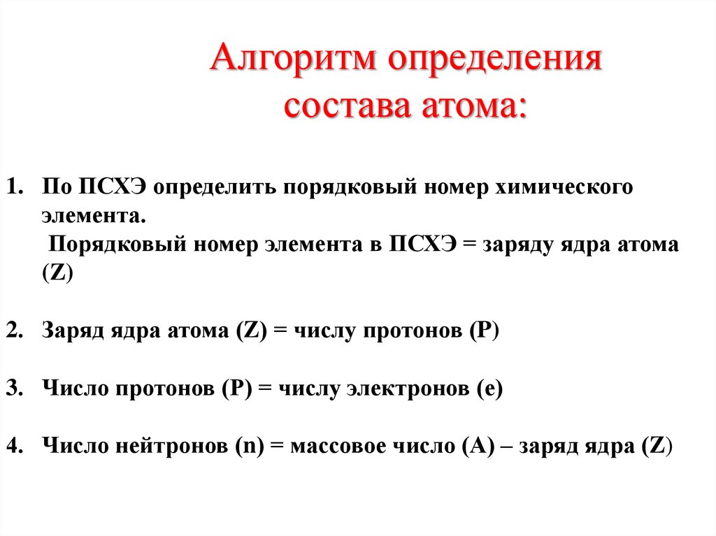 Алгоритм определениясостава атома: