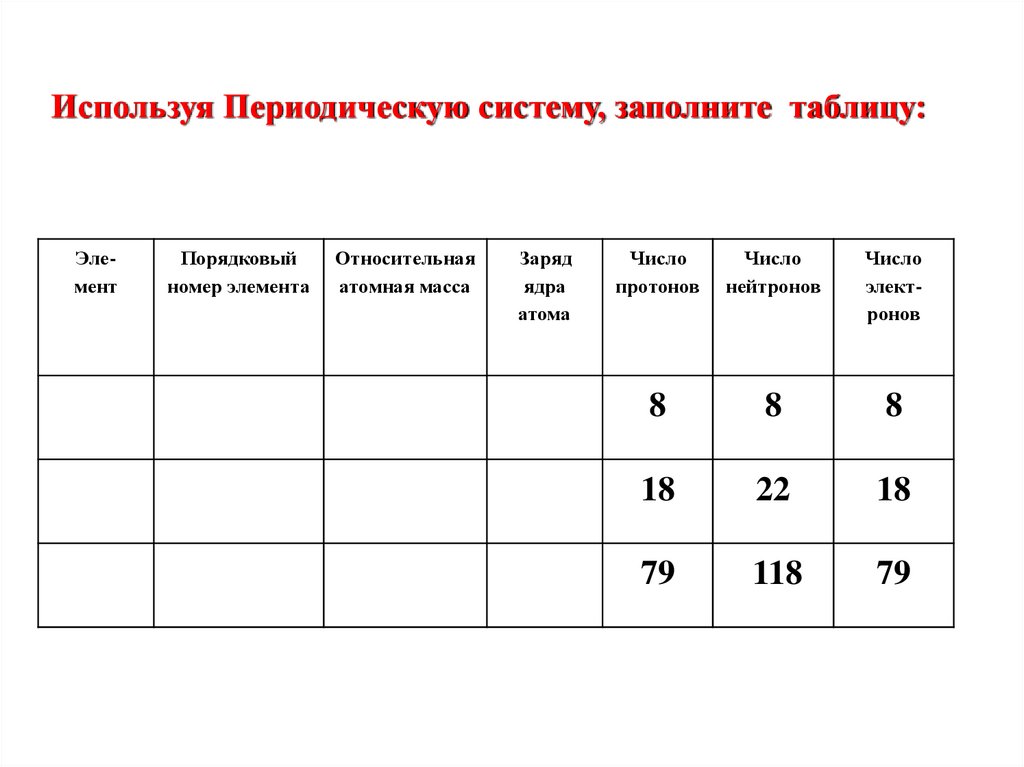 Используя Периодическую систему, заполните таблицу:Элемент