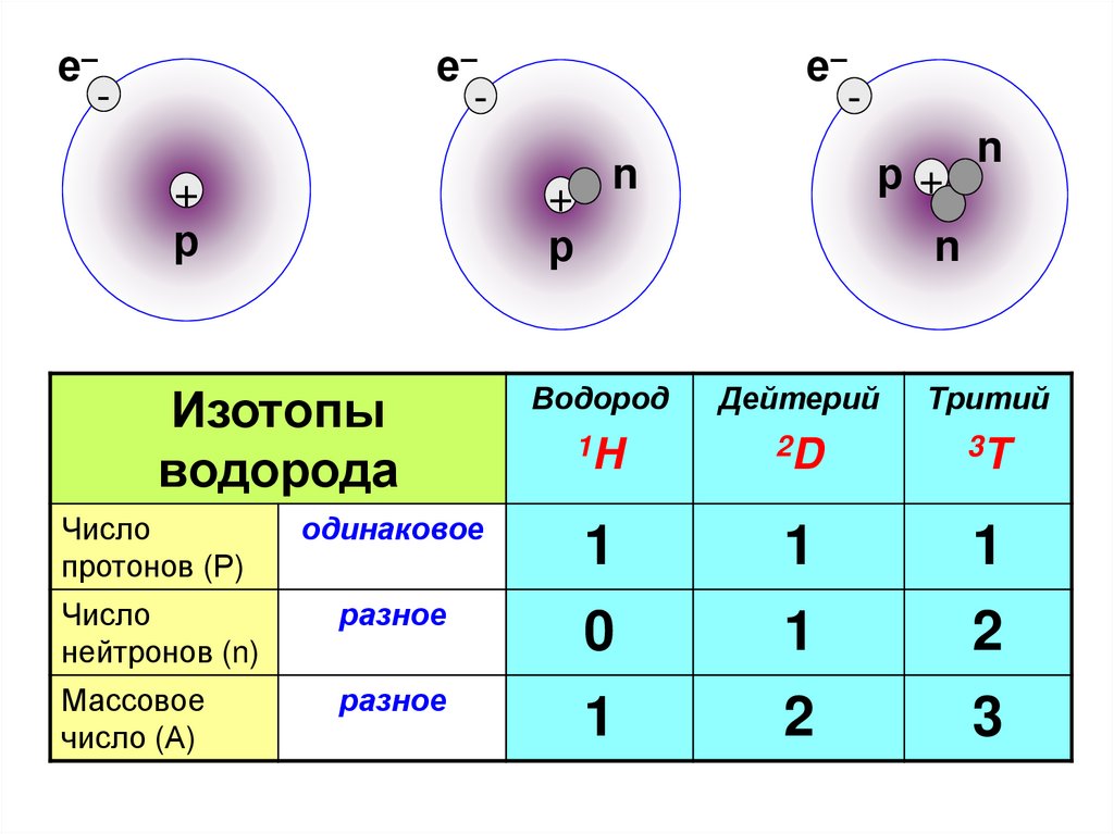 5) Изотопы водорода отличаются друг от друга :