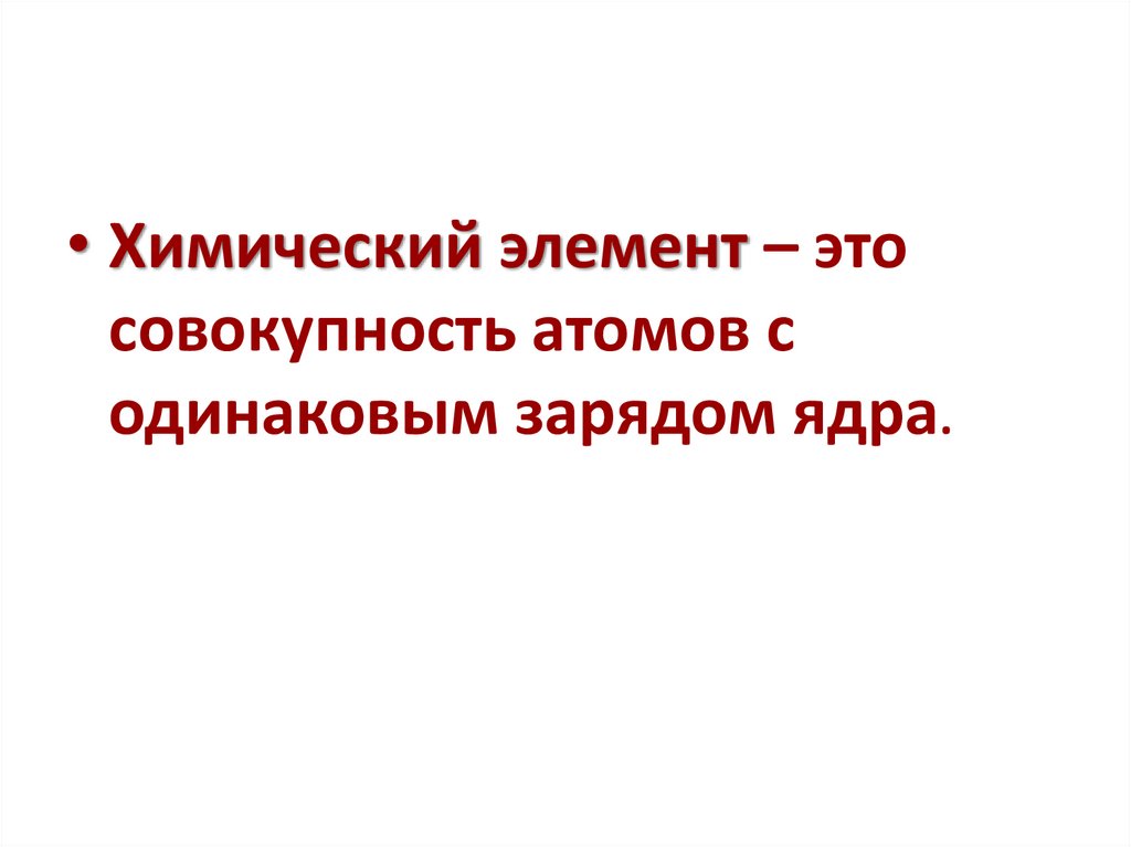 • Химический элемент – этосовокупность атомов с