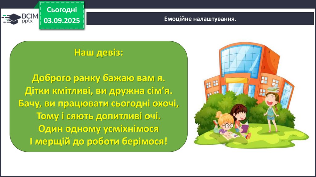 Повідомлення теми уроку та мотивація навчально-пізнавальної