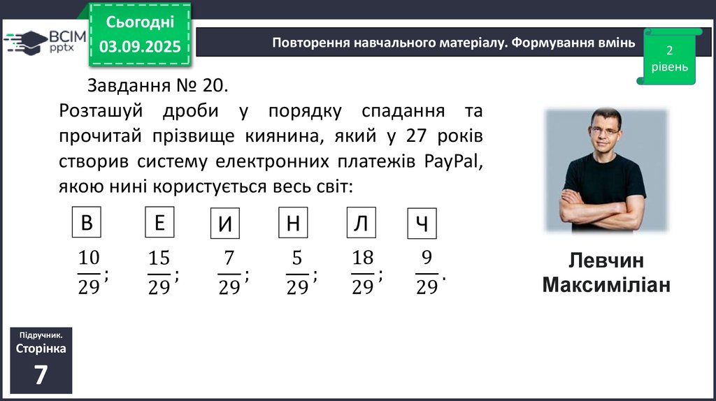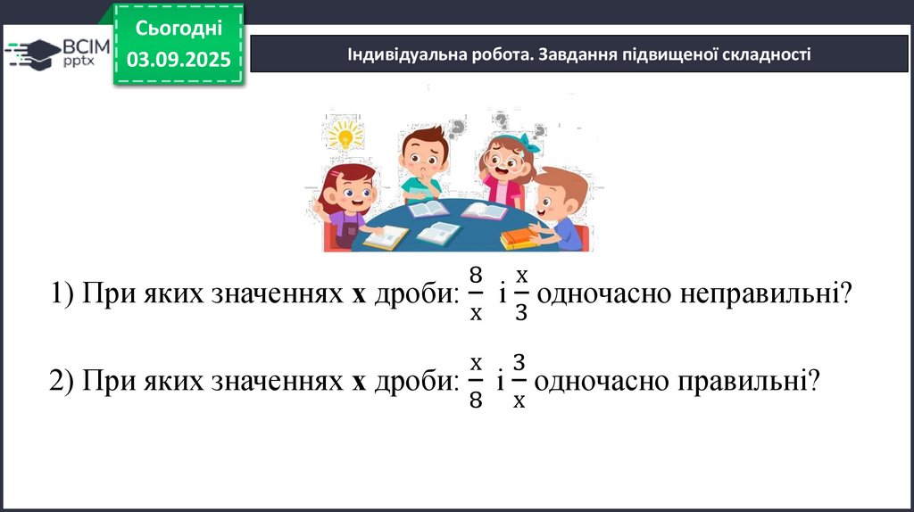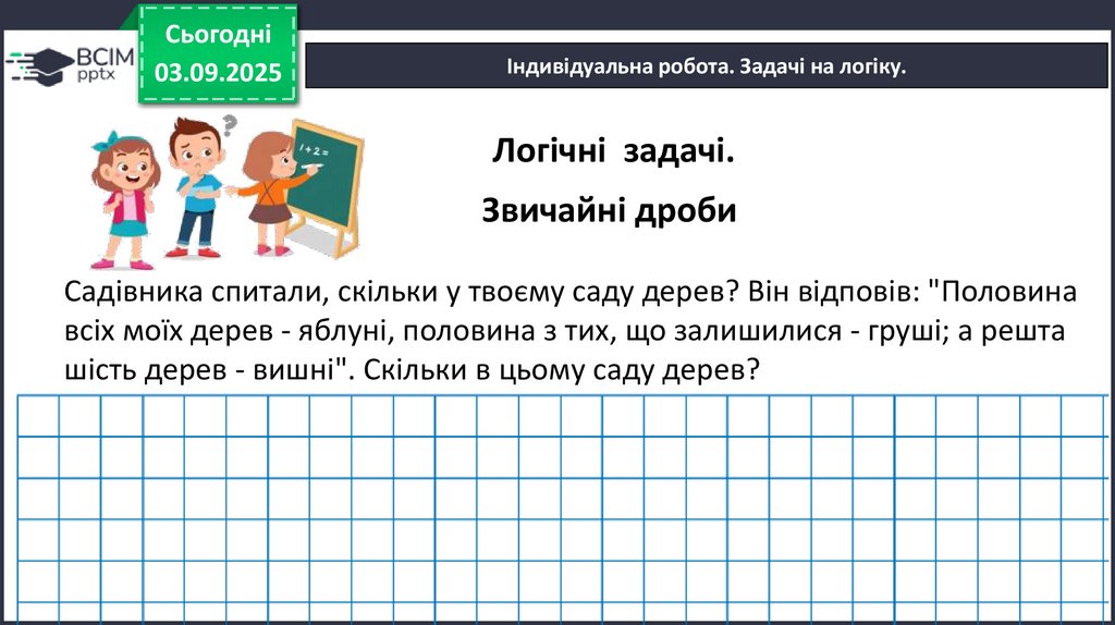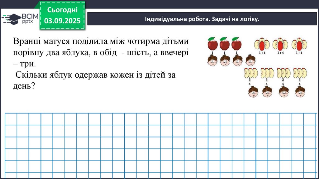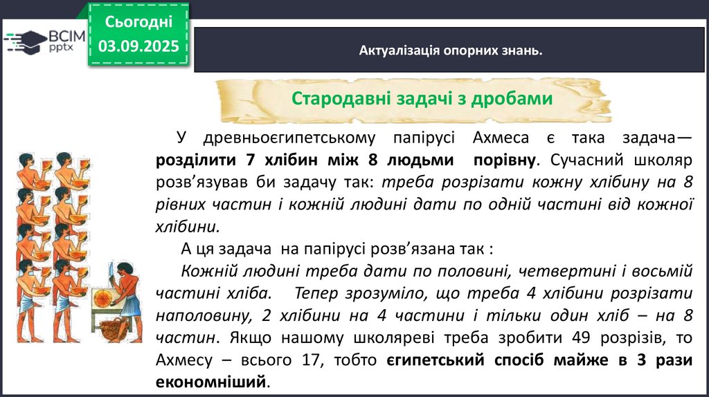 розділити 7 хлібин між 8 людьми порівну. Сучасний школяр