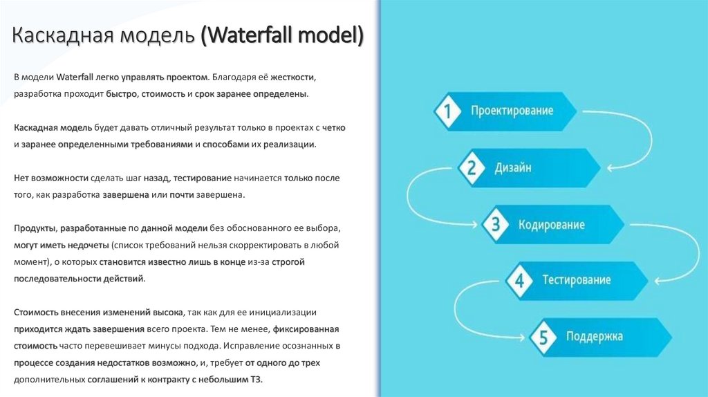 для сложных и дорогих, например, таких, как разработка системы документооборота для банка, когда каждый следующий шаг требует большего анализа