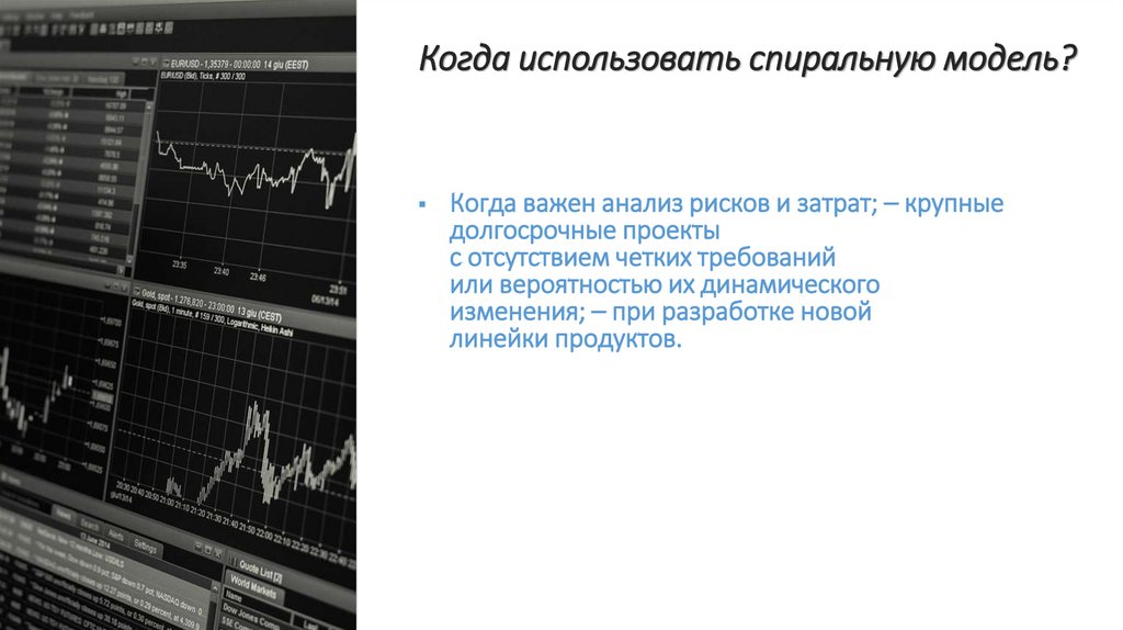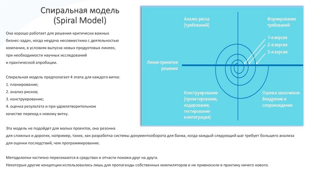 Когда использовать спиральную модель?Когда важен анализ рисков и затрат; – крупные