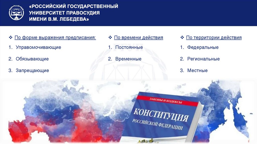 прямое действие и применяется на всей территории Российской Федерации. Законы и иные правовые