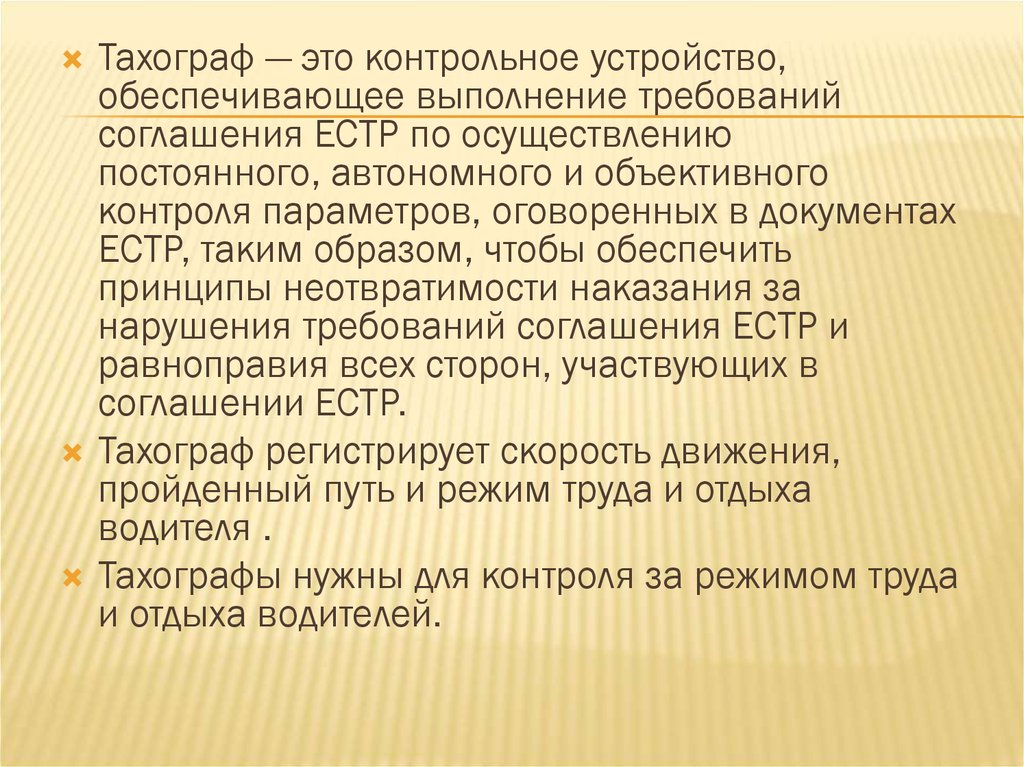 Тахограф — это контрольное устройство,обеспечивающее выполнение требований