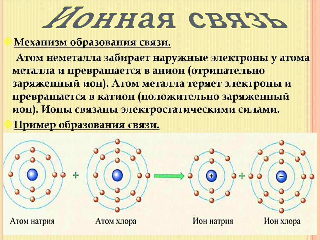 Механизм образования связи.Атом неметалла забирает наружные электроны у атома