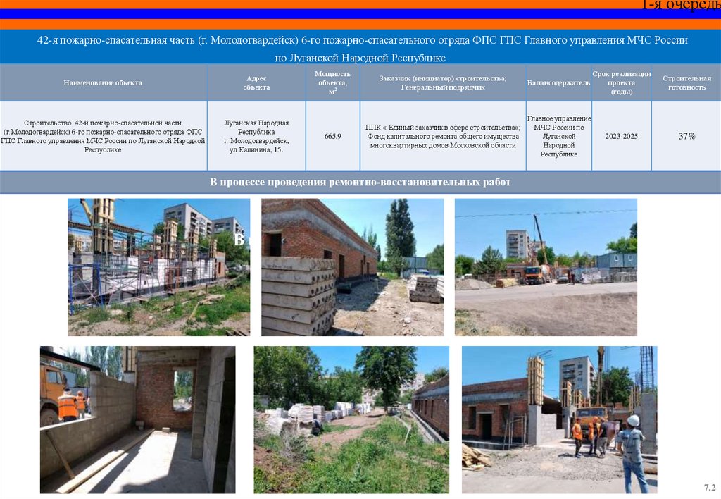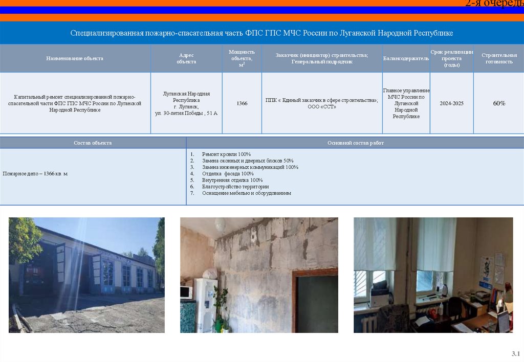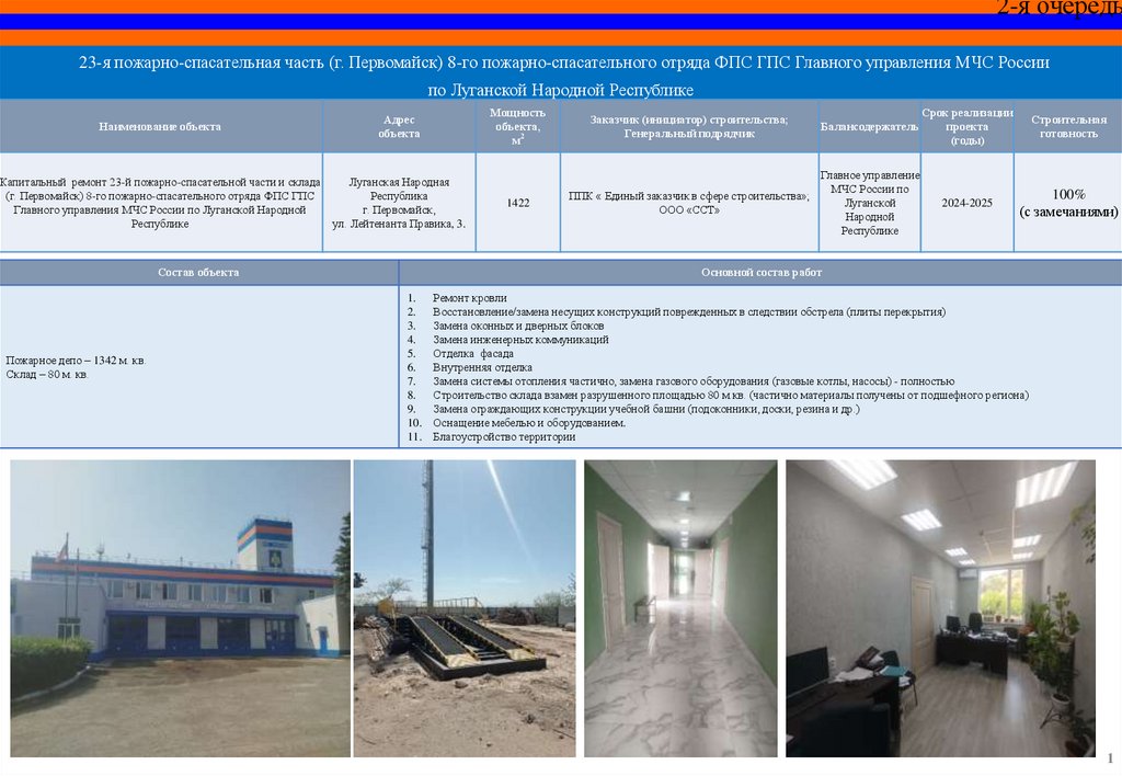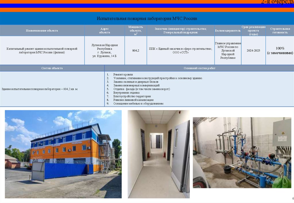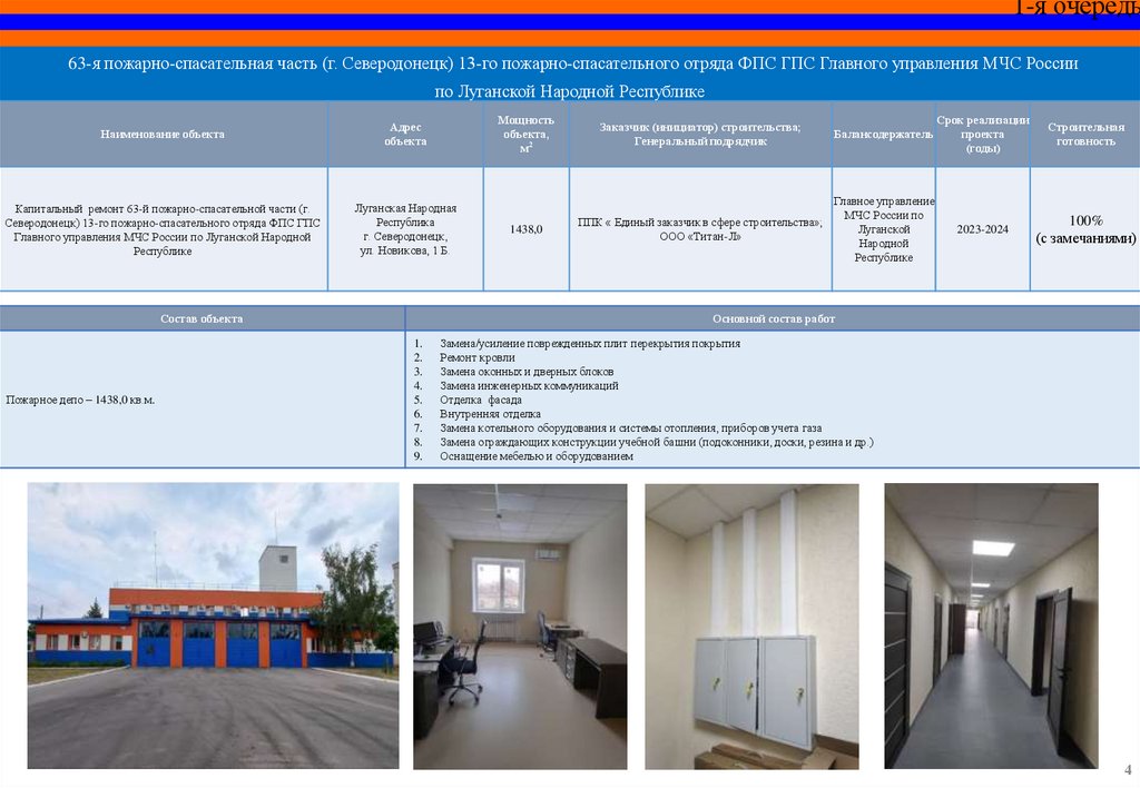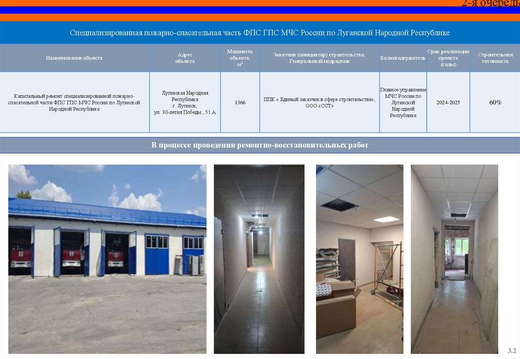СПЕЦИАЛЬНЫЙ ИНФРАСТРУКТУРНЫЙ ПРОЕКТОбъекты МЧС России на территории Луганской Народной Республики,