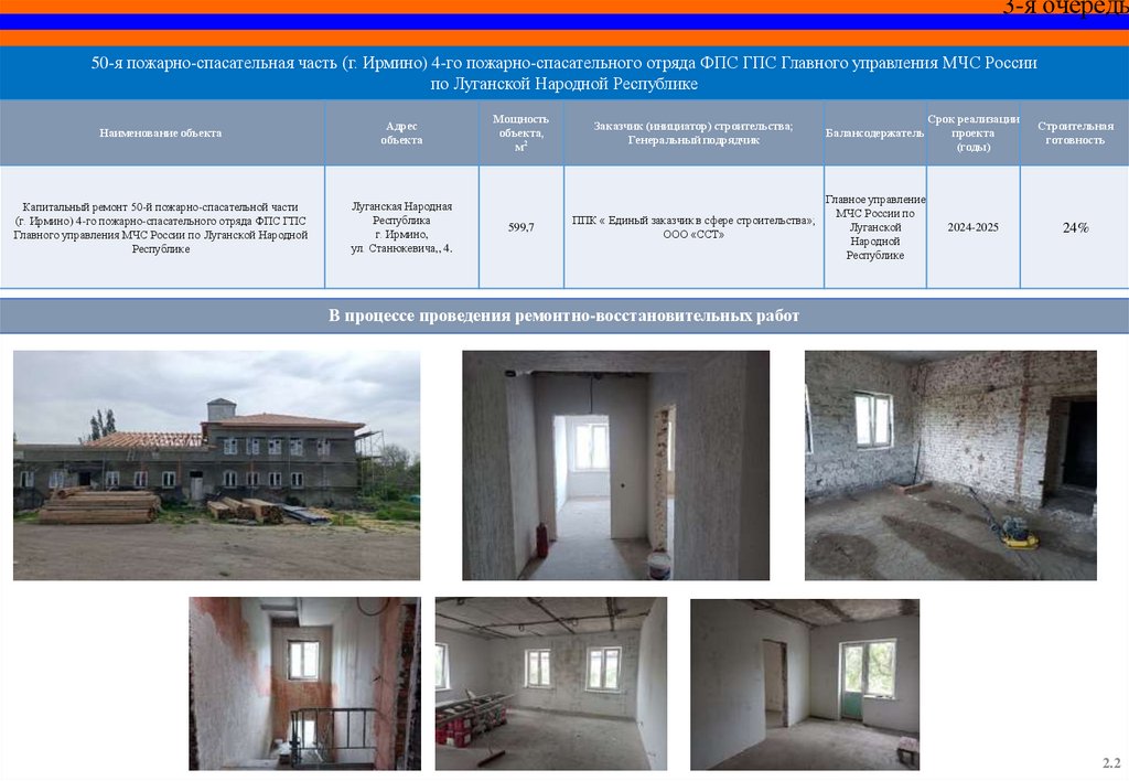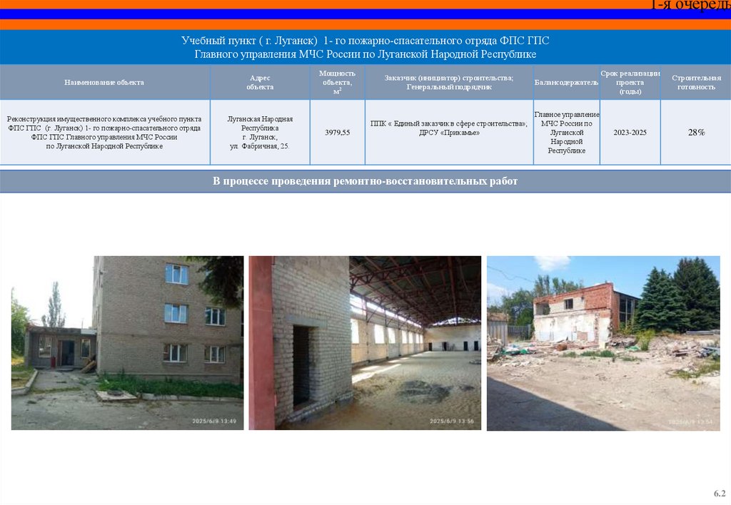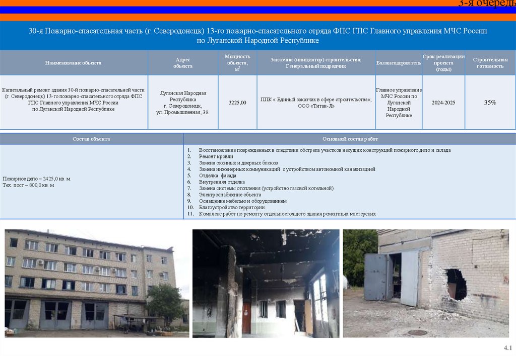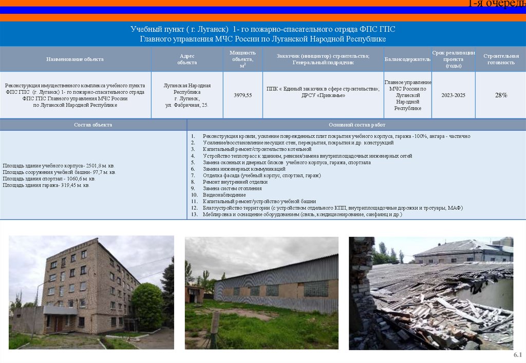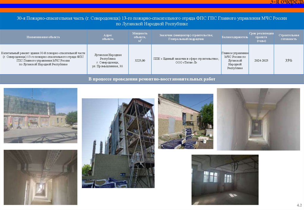 СПЕЦИАЛЬНЫЙ ИНФРАСТРУКТУРНЫЙ ПРОЕКТОбъекты МЧС России на территории Луганской Народной Республики,