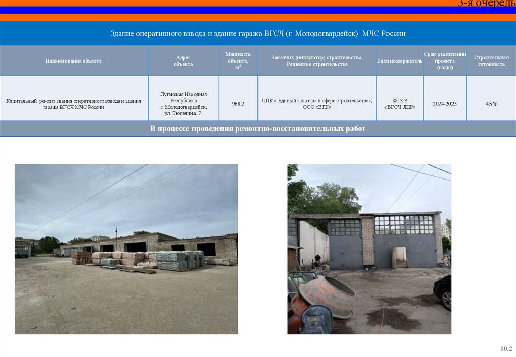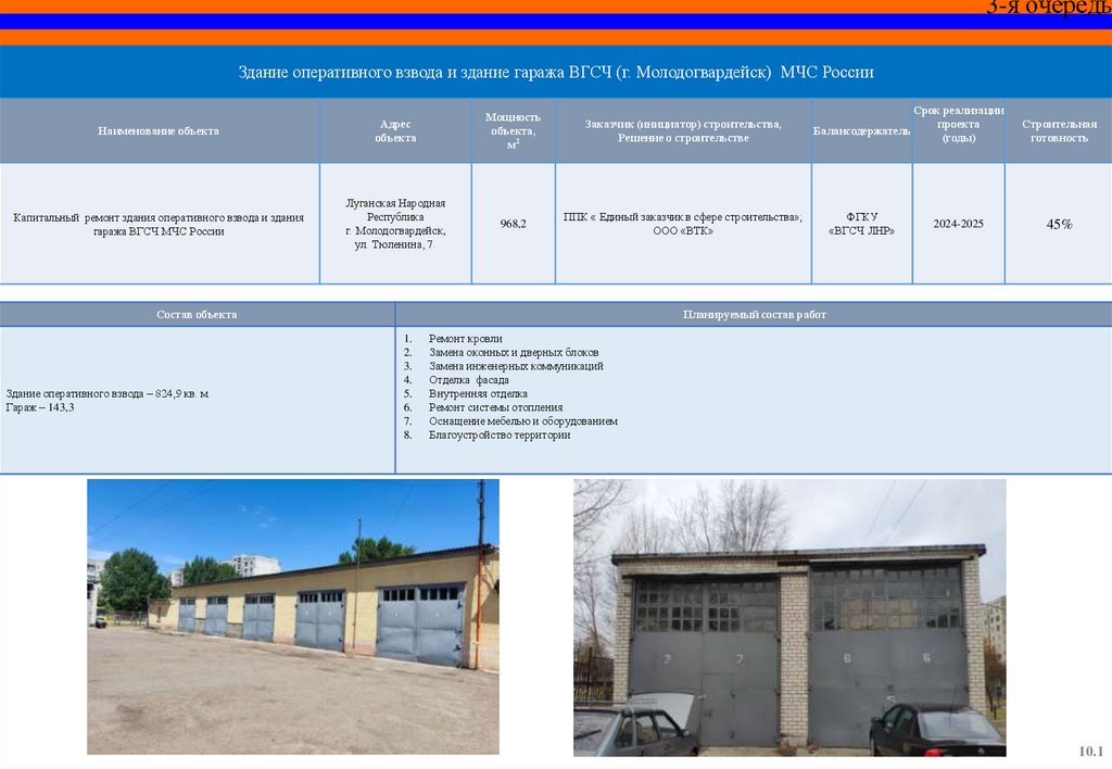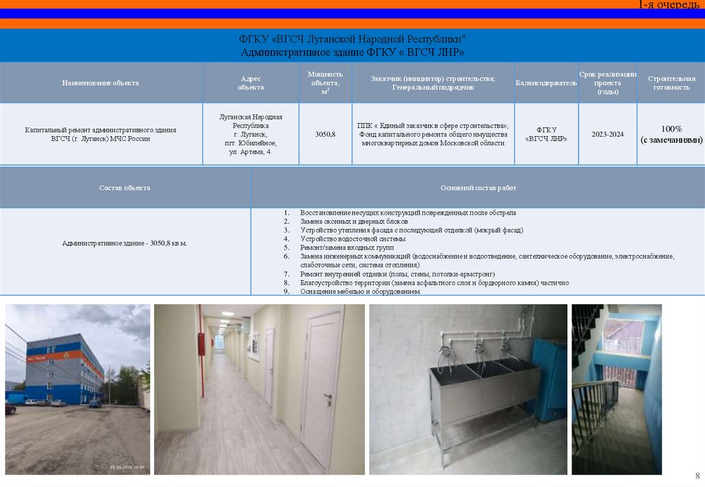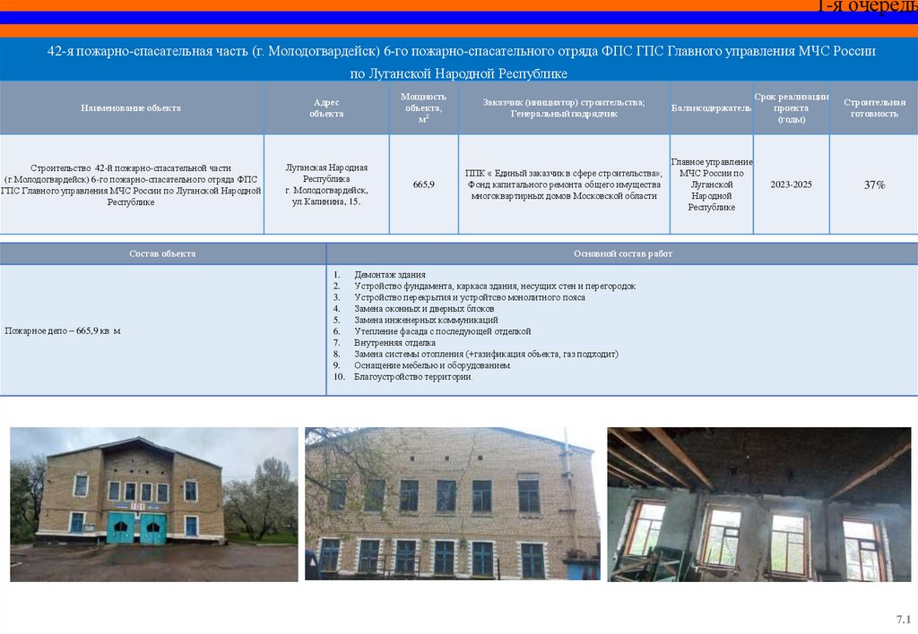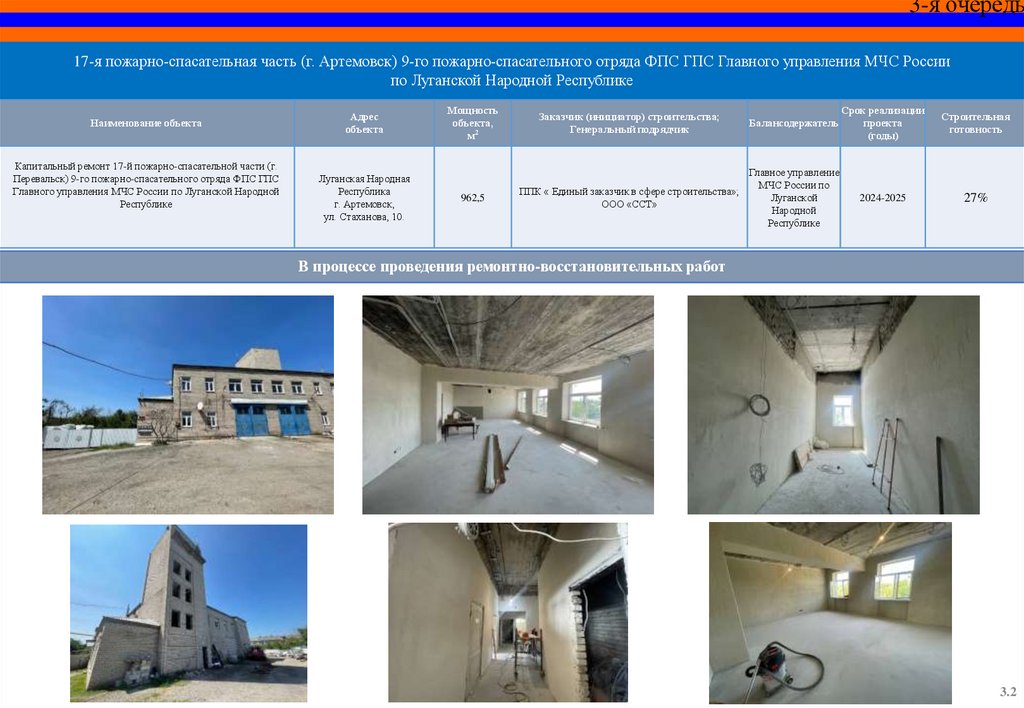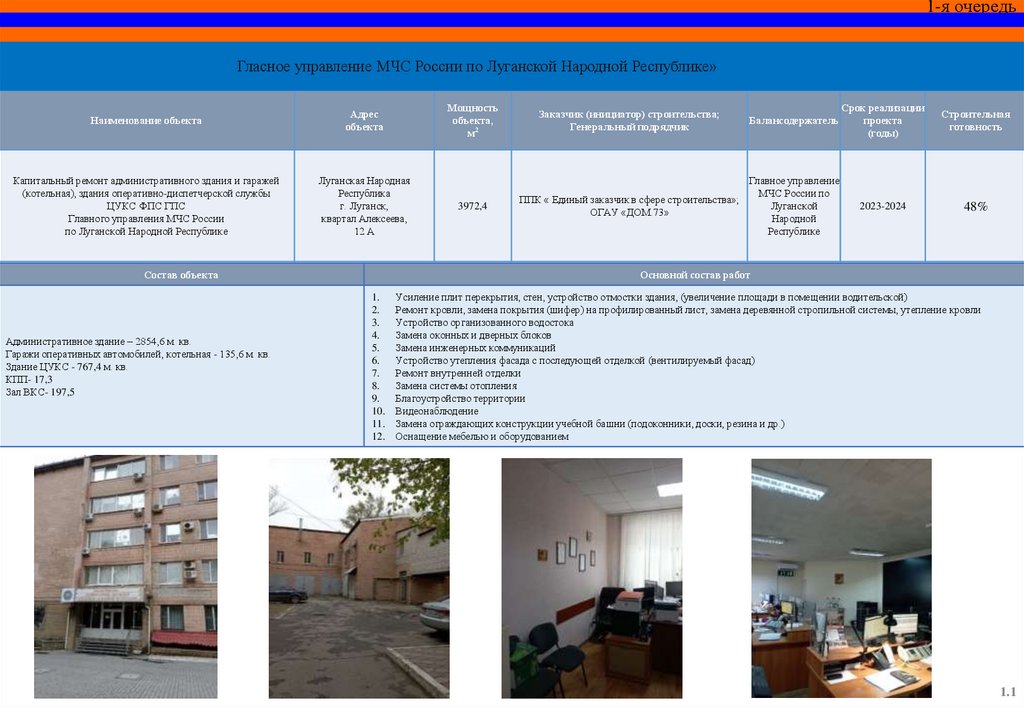 СПЕЦИАЛЬНЫЙ ИНФРАСТРУКТУРНЫЙ ПРОЕКТОбъекты МЧС России на территории Луганской Народной Республики,