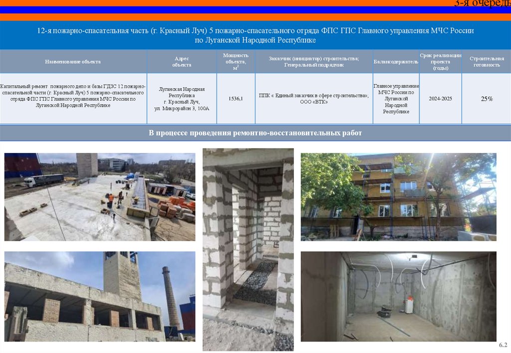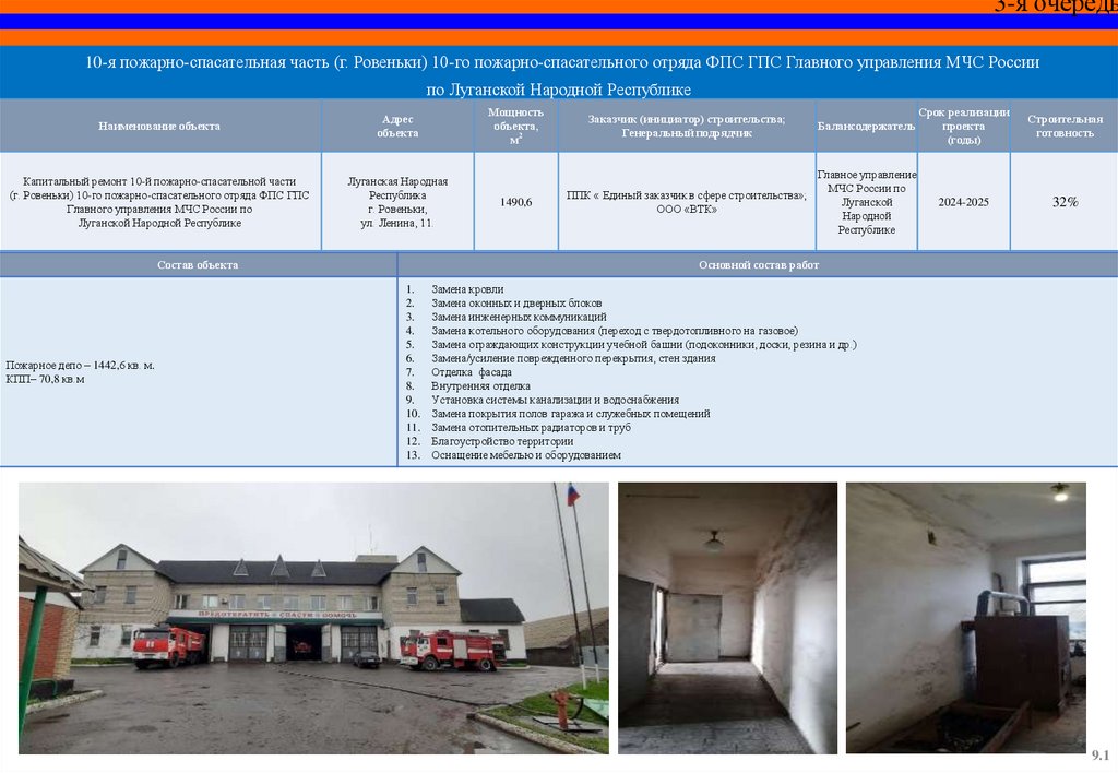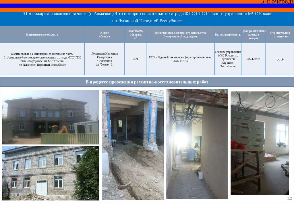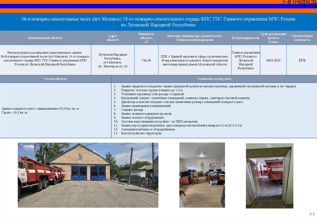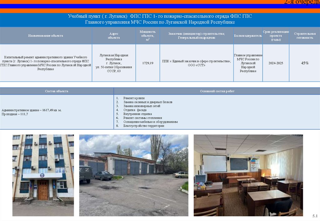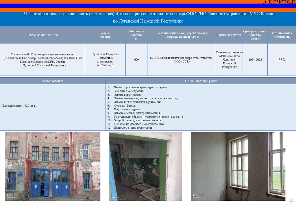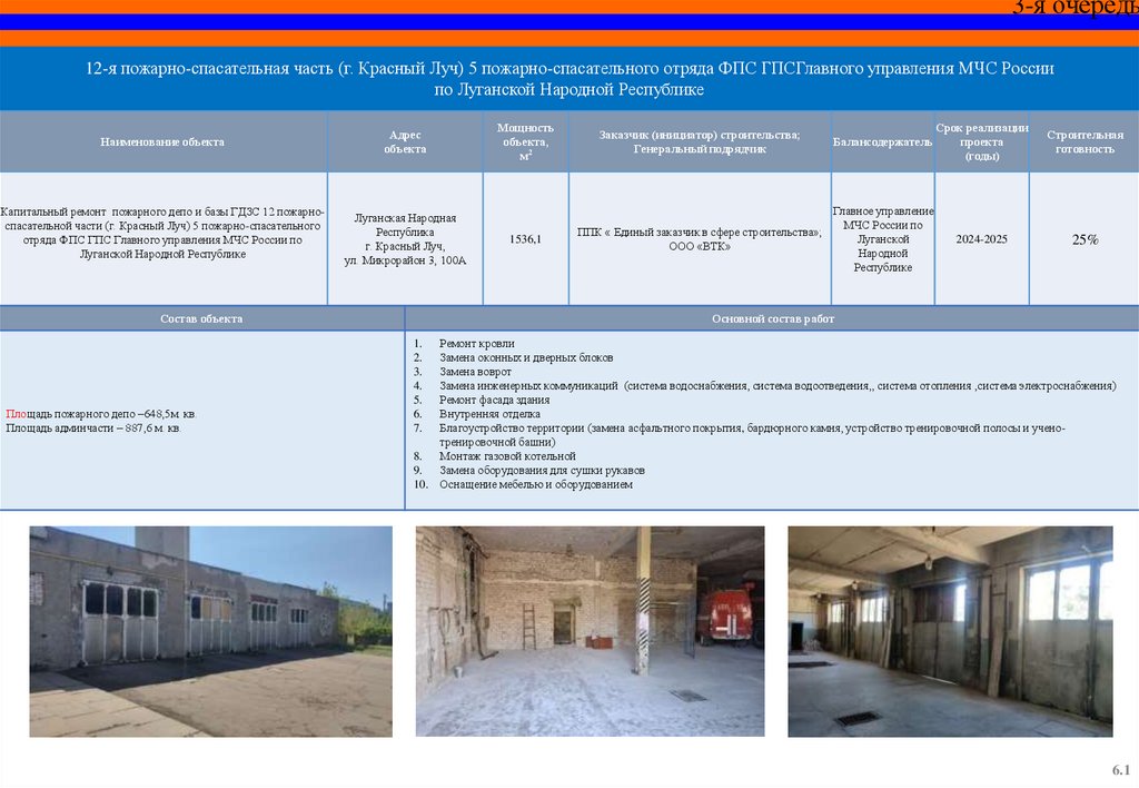 Капитальный ремонт пожарного депо и базы ГДЗС 12 пожарноспасательной части (г. Красный Луч) 5 пожарно-спасательного