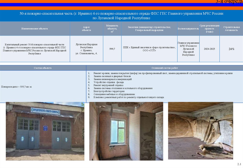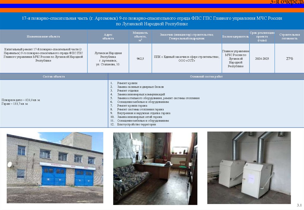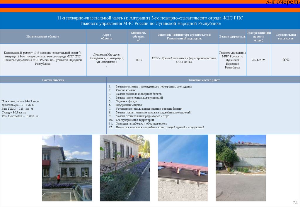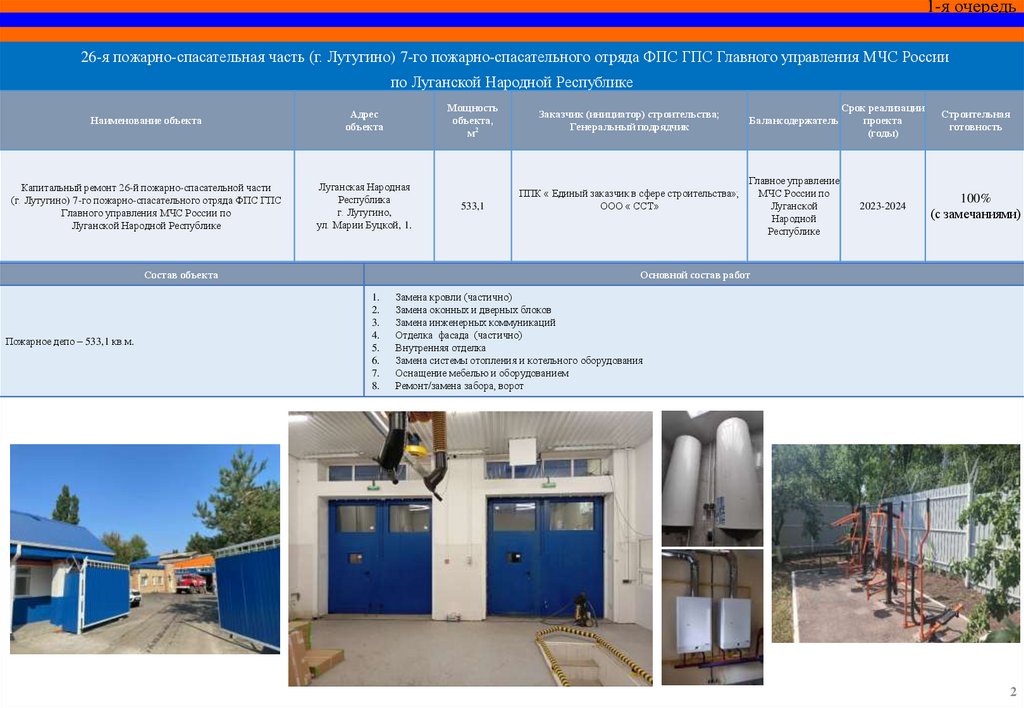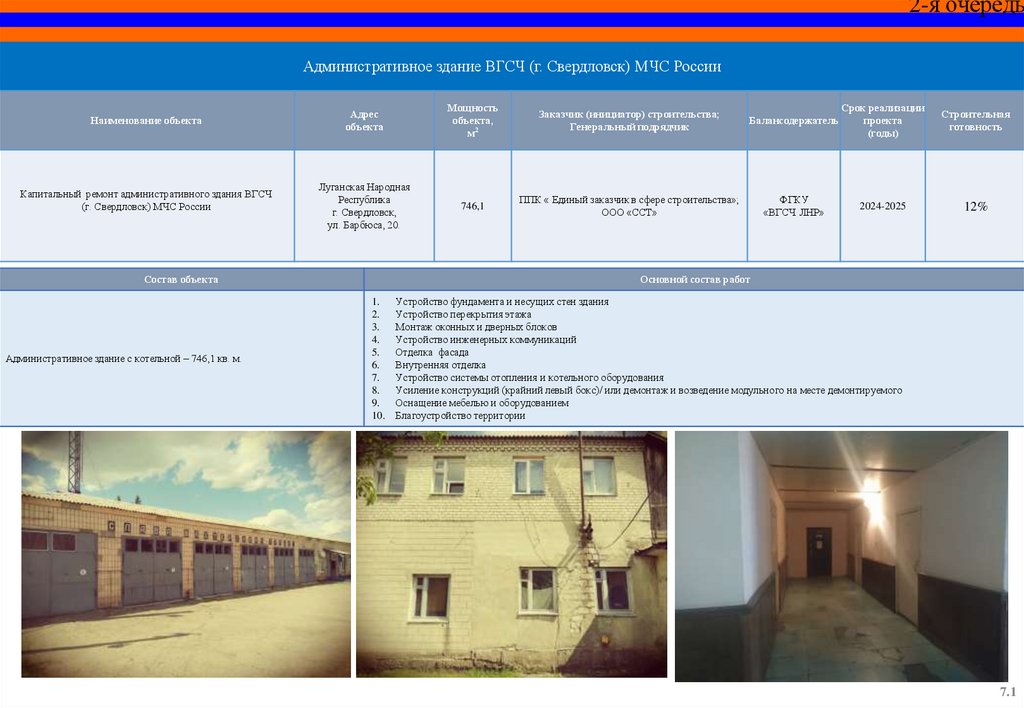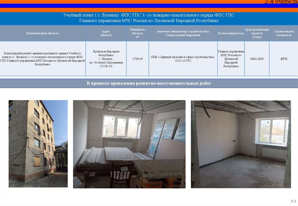 Капитальный ремонт пожарного депо и базы ГДЗС 12 пожарноспасательной части (г. Красный Луч) 5 пожарно-спасательного