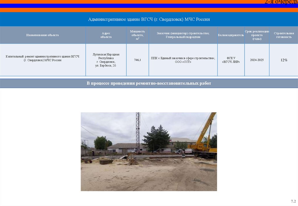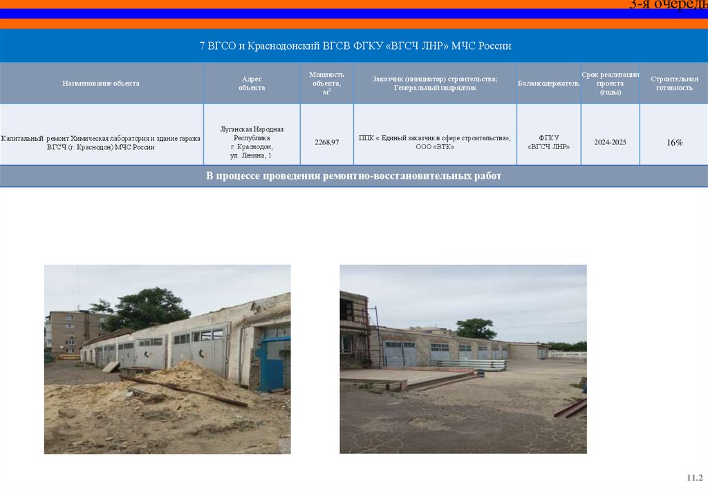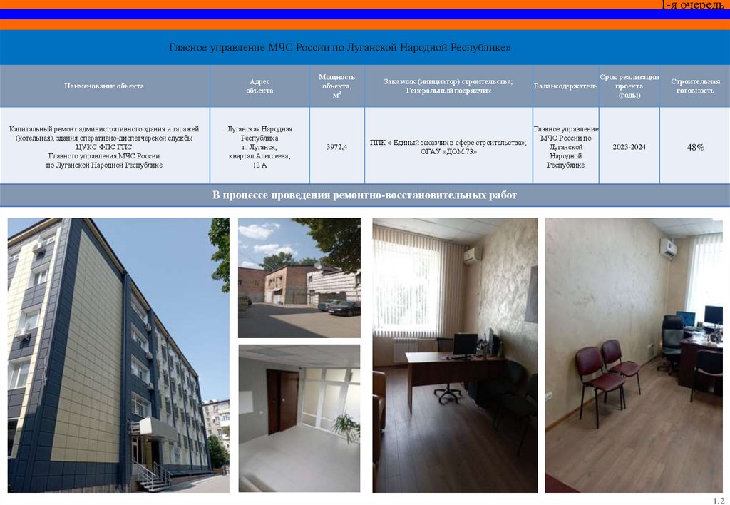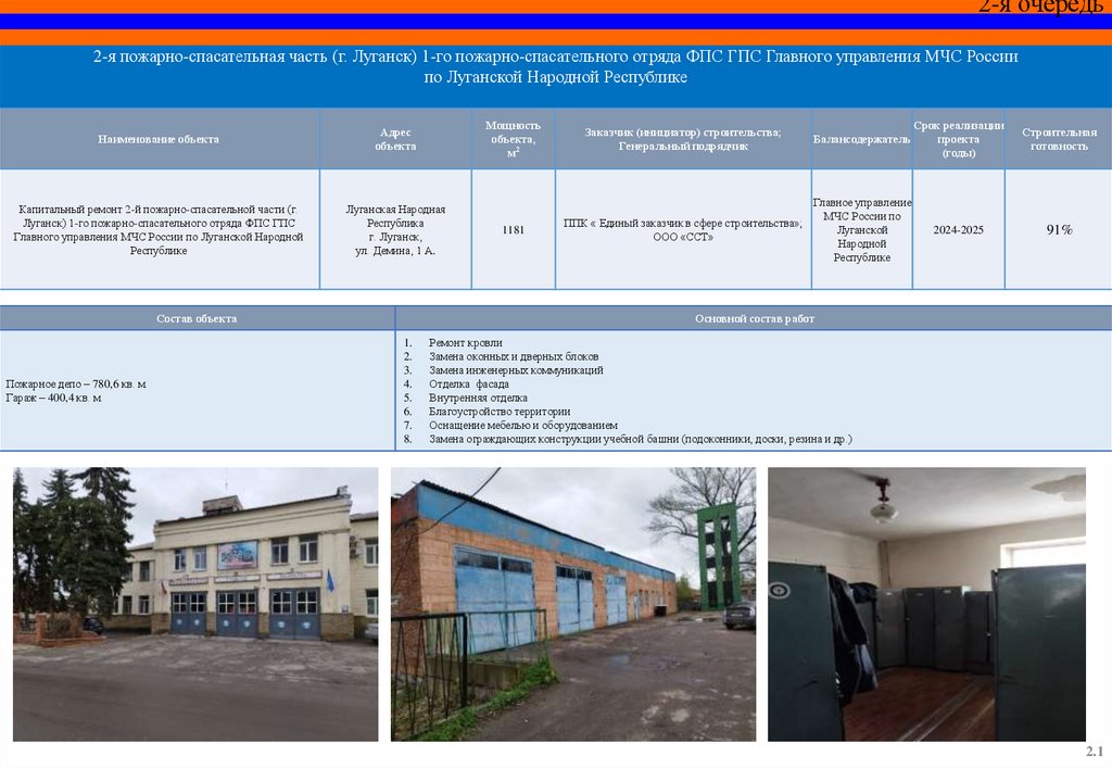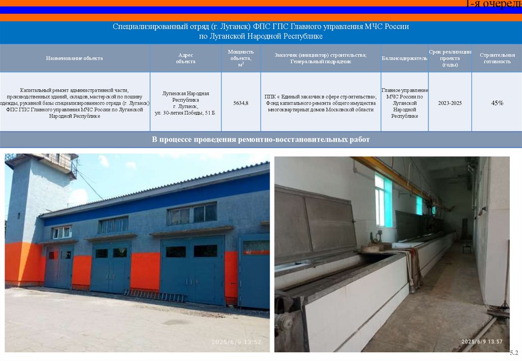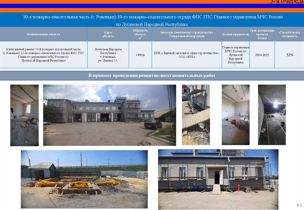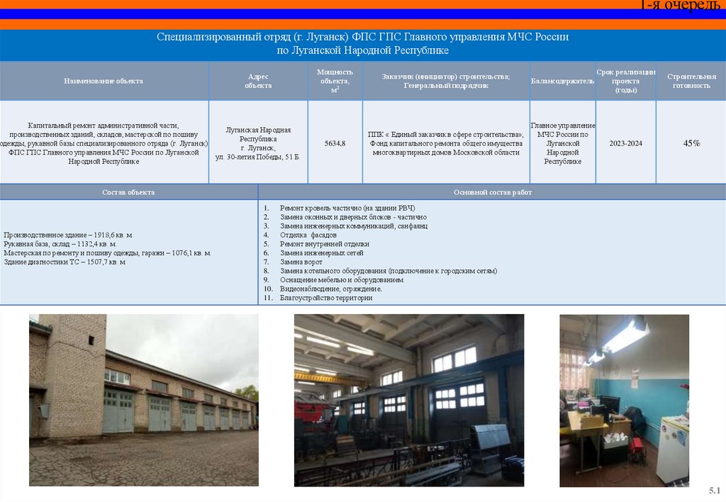Капитальный ремонт пожарного депо и базы ГДЗС 12 пожарноспасательной части (г. Красный Луч) 5 пожарно-спасательного