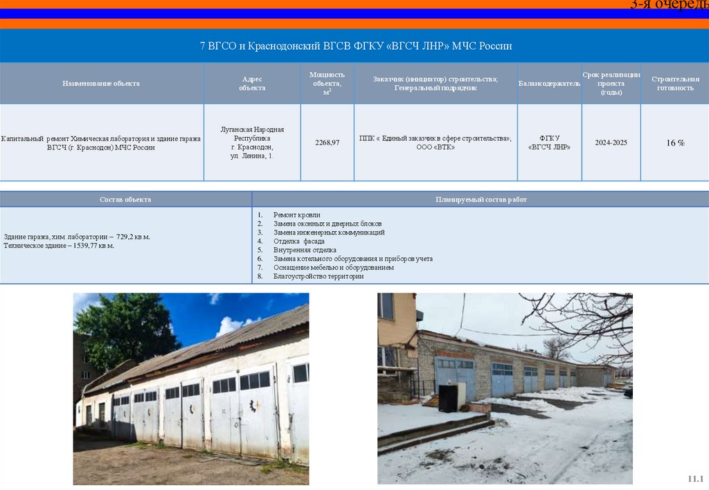 3-я очередьЗдание оперативного взвода и здание гаража ВГСЧ (г. Молодогвардейск) МЧС России