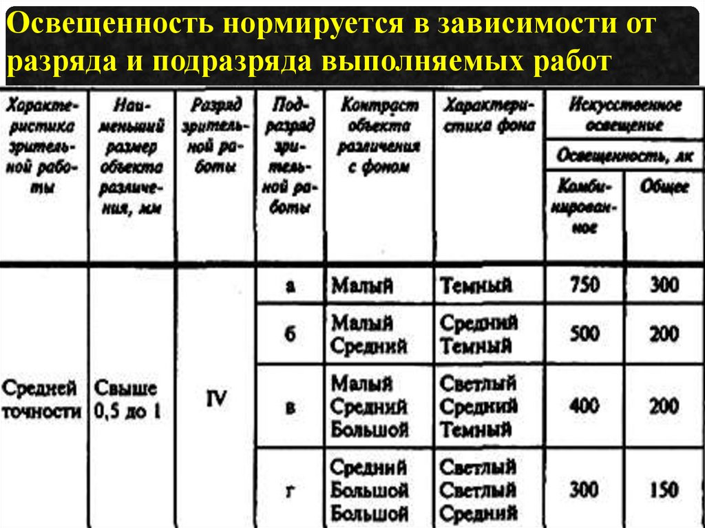 с 200 до 800 лк увеличивает производительность труда на 8 %