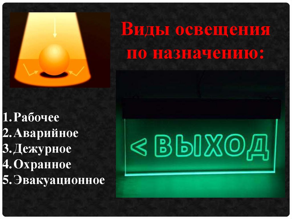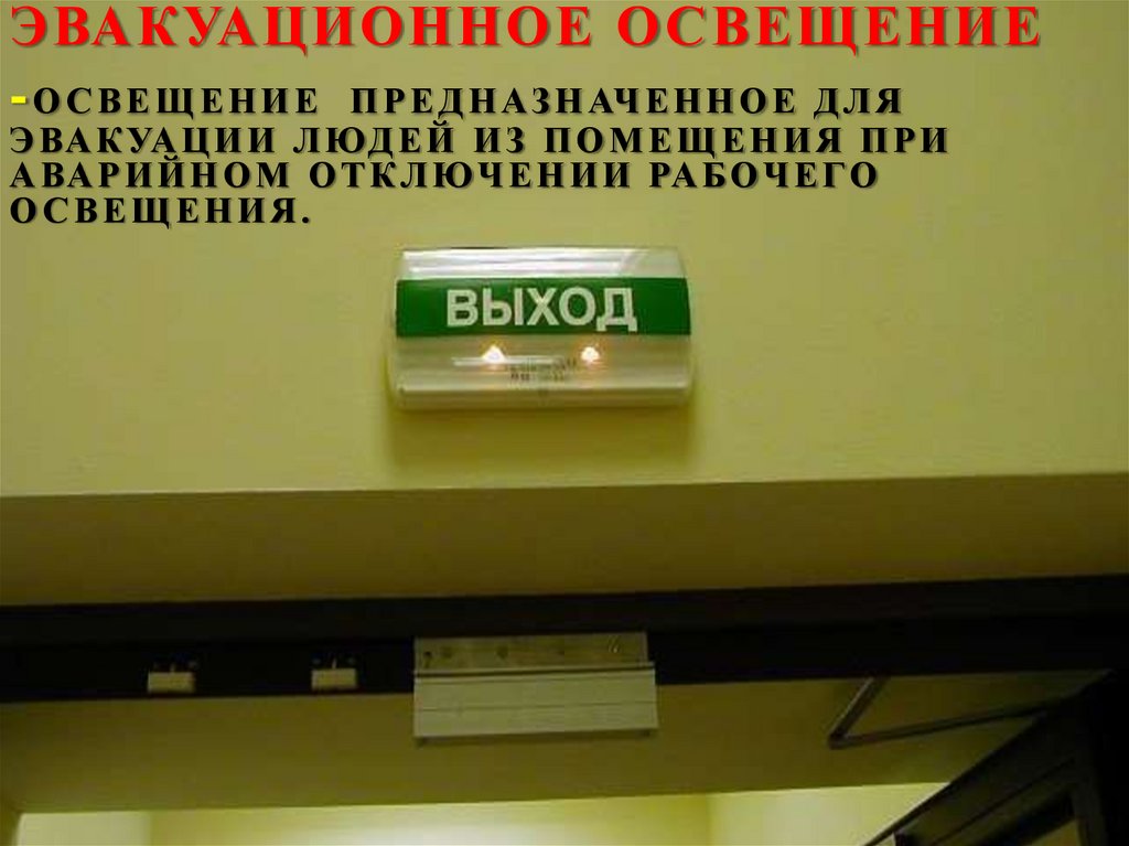 ЭВАКУАЦИОННОЕ ОСВЕЩЕНИЕ- О С В Е Щ Е Н И Е П Р Е Д Н А З Н АЧ Е Н Н О Е Д Л Я