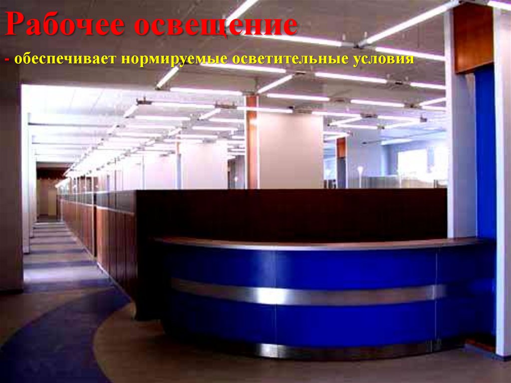 Рабочее освещение- обеспечивает нормируемые осветительные условия