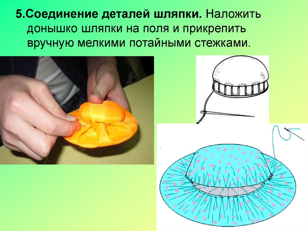 5.Соединение деталей шляпки. Наложитьдонышко шляпки на поля и прикрепить