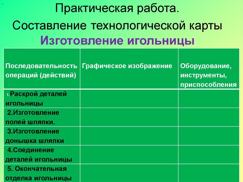 16. Практическая работа. Составление технологической карты Изготовление игольницы