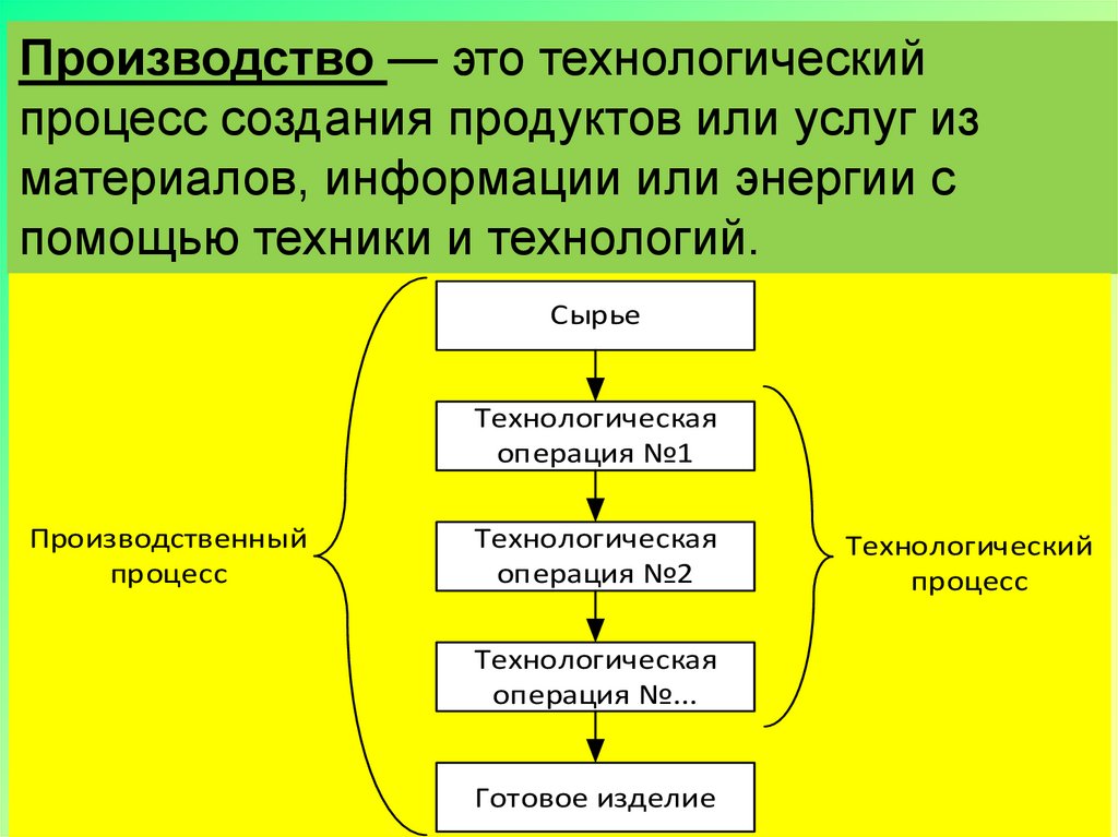 Производство — это технологическийпроцесс создания продуктов или услуг из