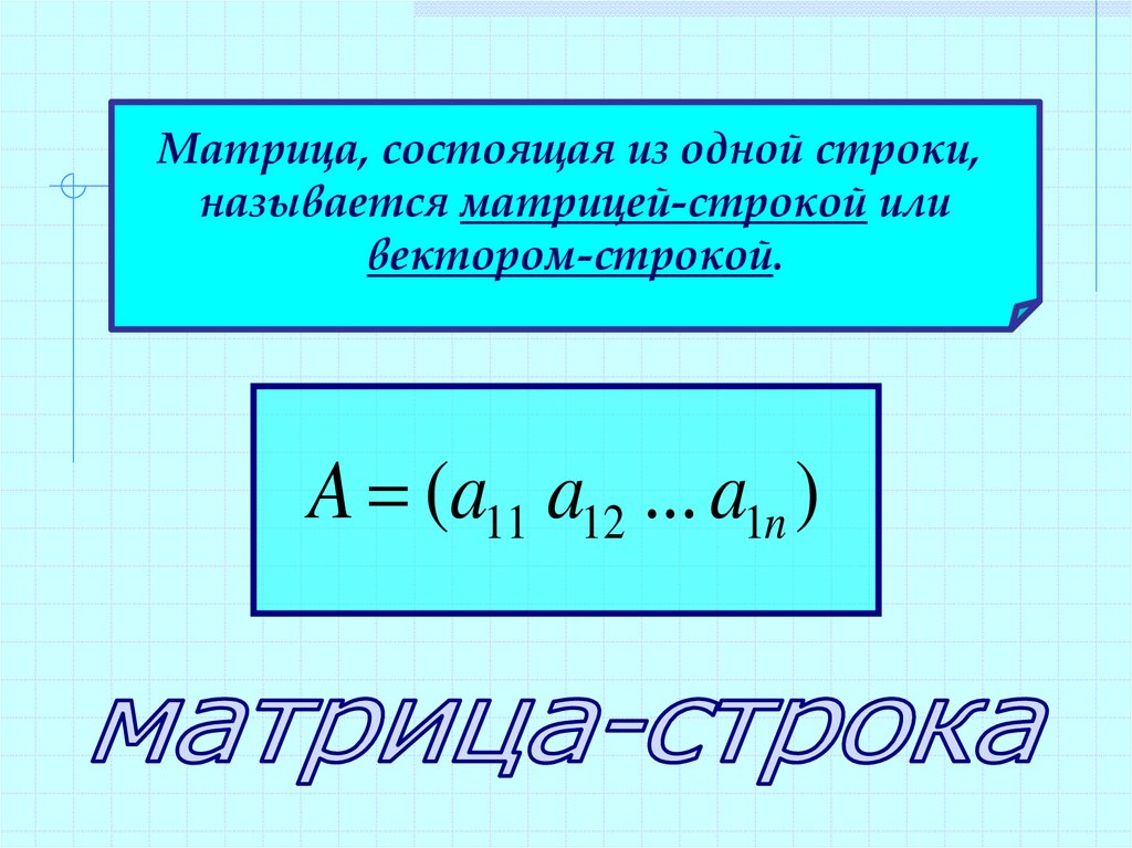 Матрица, состоящая из одной строки,называется матрицей-строкой или