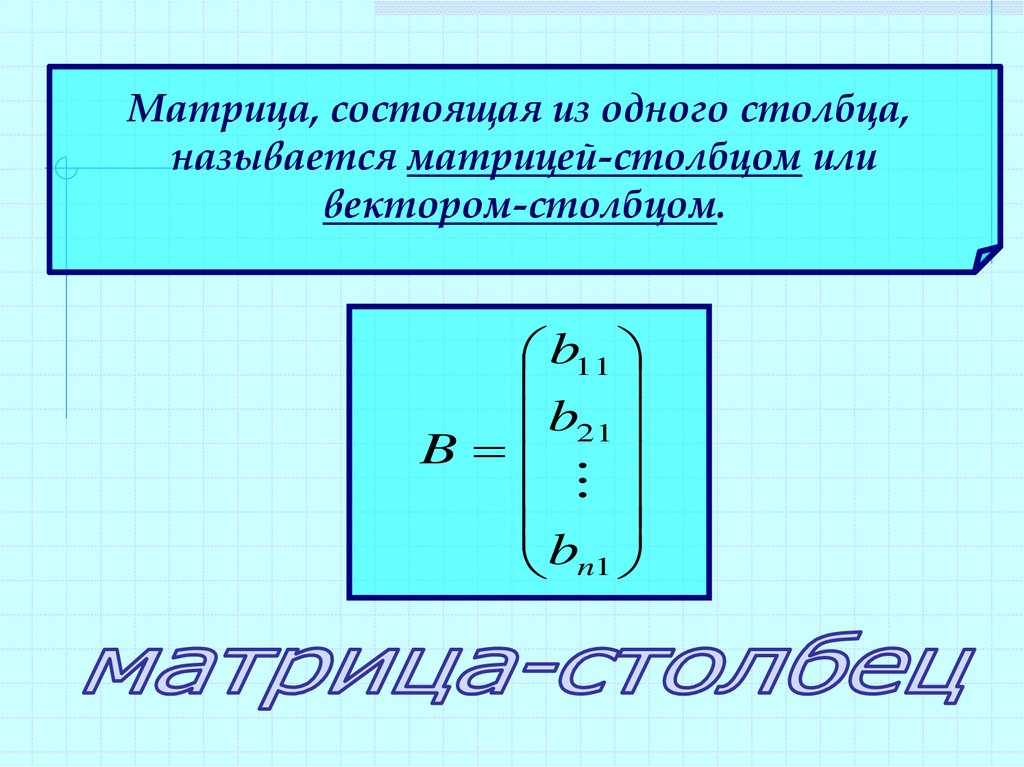Матрица, состоящая из одного столбца,называется матрицей-столбцом или