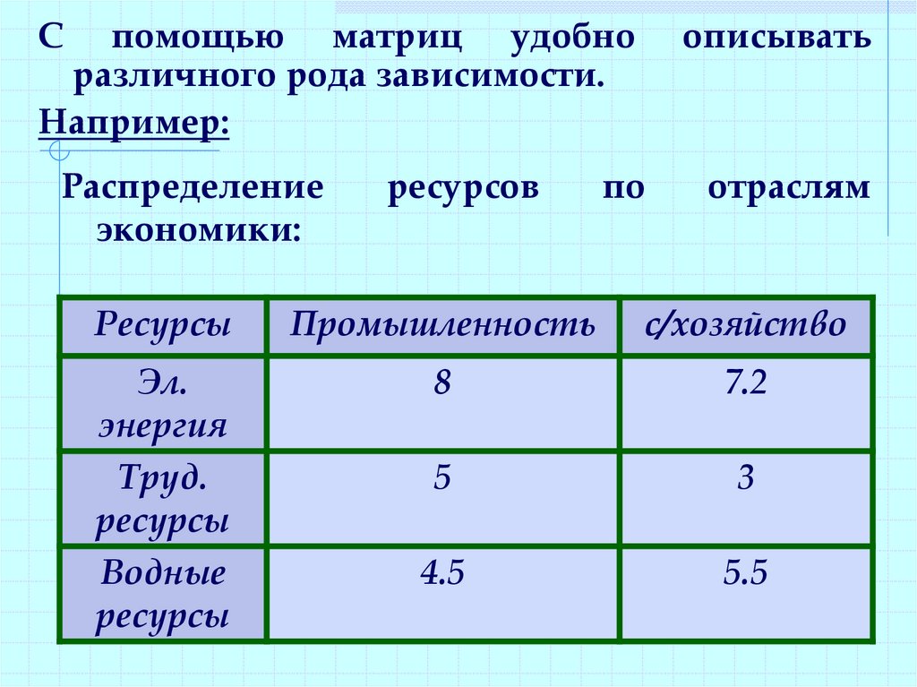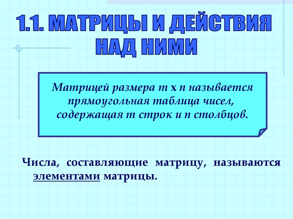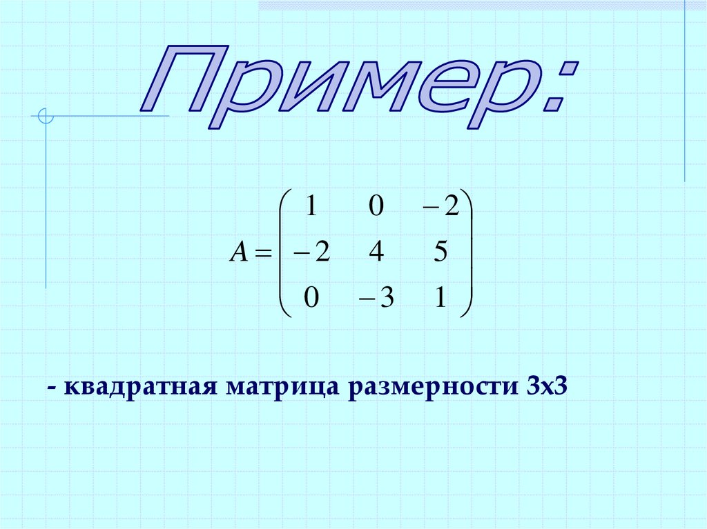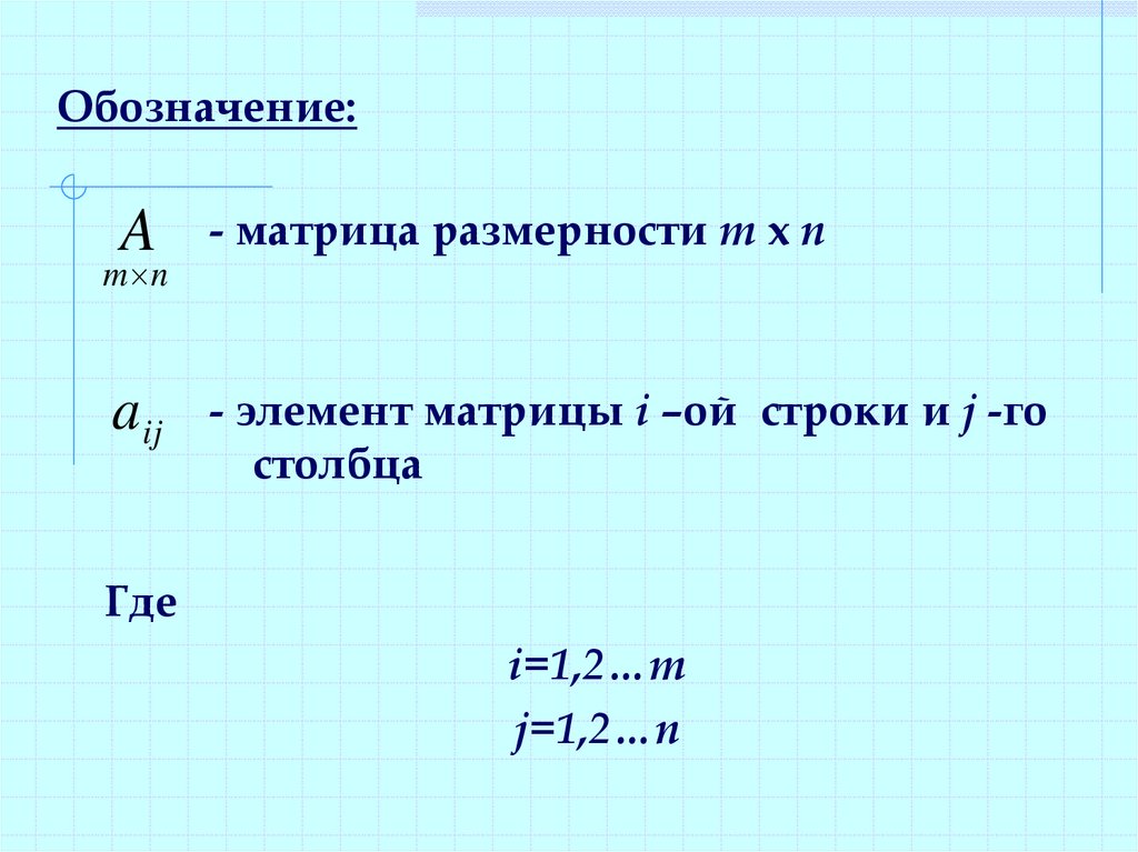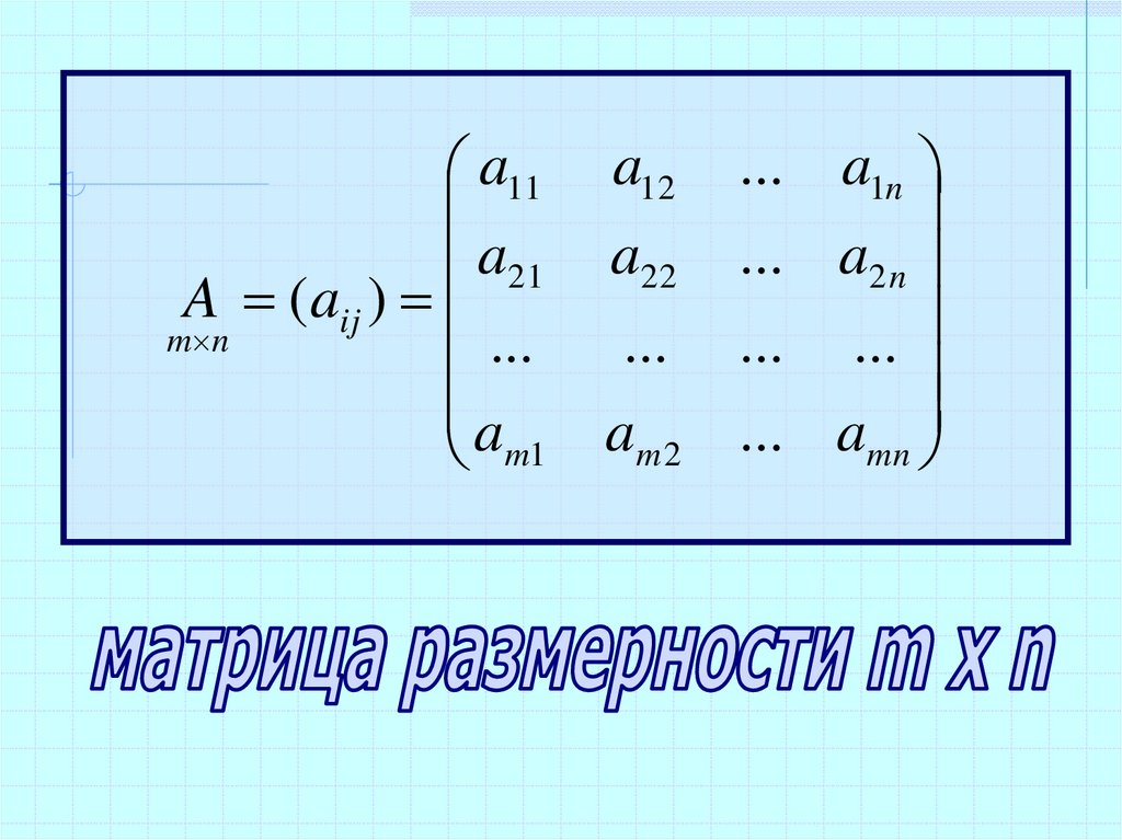 Матрицей размера m x n называетсяпрямоугольная таблица чисел,