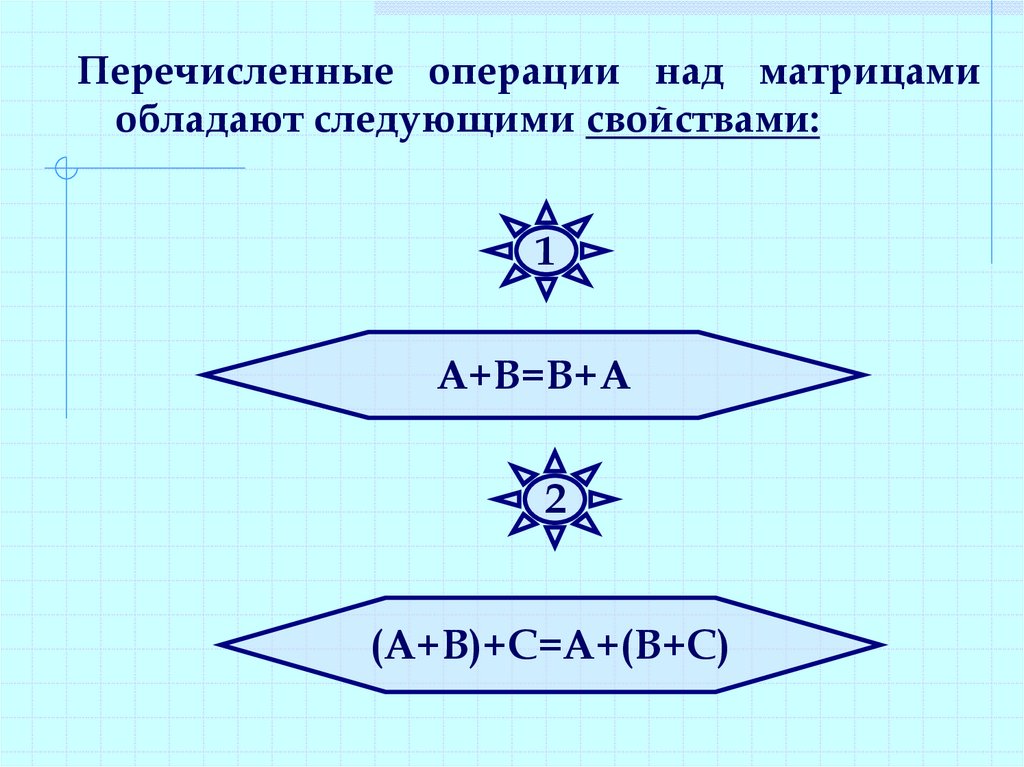 Перечисленные операции над матрицамиобладают следующими свойствами: