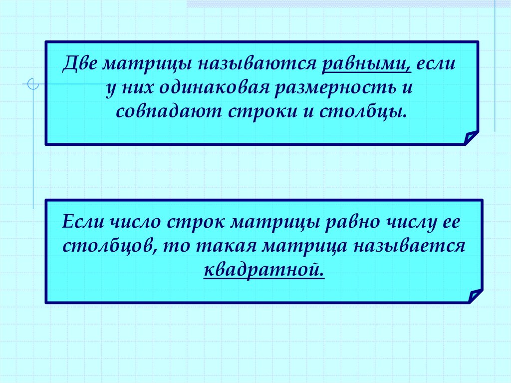Две матрицы называются равными, еслиу них одинаковая размерность и