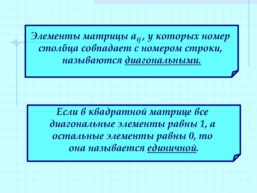 Элементы матрицы aij , у которых номерстолбца совпадает с номером строки,