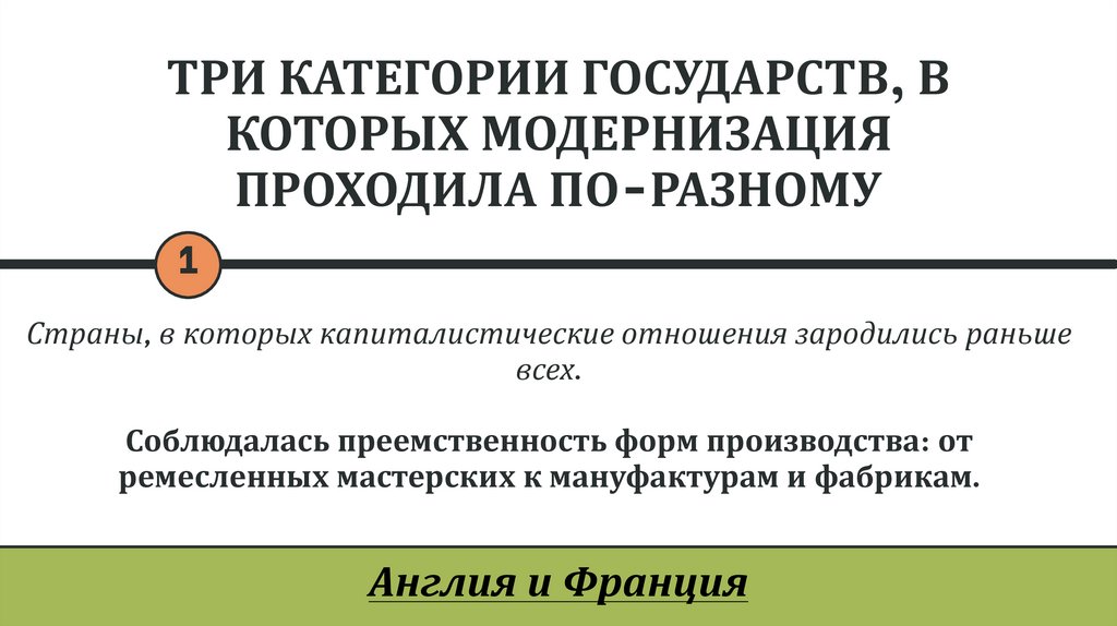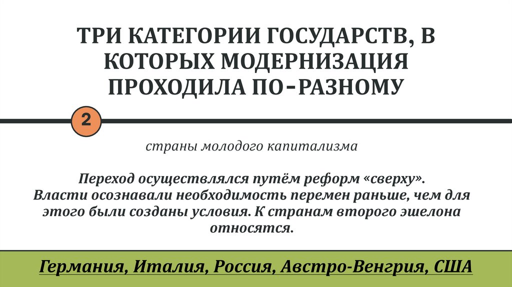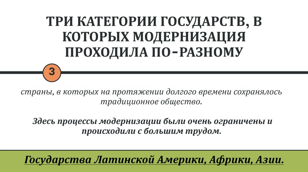 ТРИ КАТЕГОРИИ ГОСУДАРСТВ, ВКОТОРЫХ МОДЕРНИЗАЦИЯ