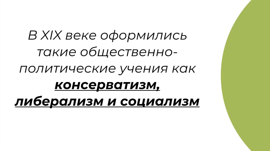 В XIX веке оформилисьтакие общественнополитические учения как