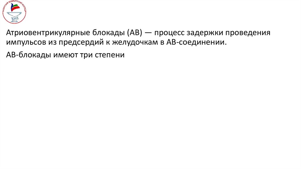 Атриовентрикулярные блокады (АВ) — процесс задержки проведенияимпульсов из предсердий к желудочкам в АВ-соединении.