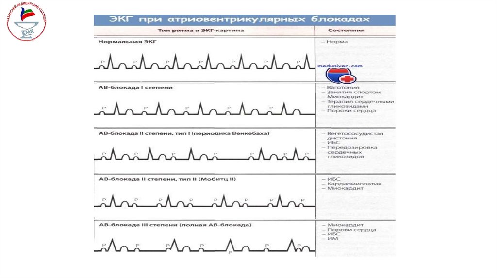 • Причины: ИБС, гиповолемия, интоксикация препаратами