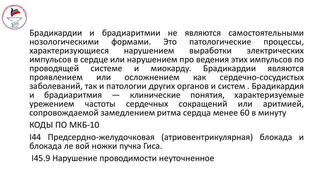 Брадикардии и брадиаритмии не являются самостоятельныминозологическими формами. Это патологические процессы,