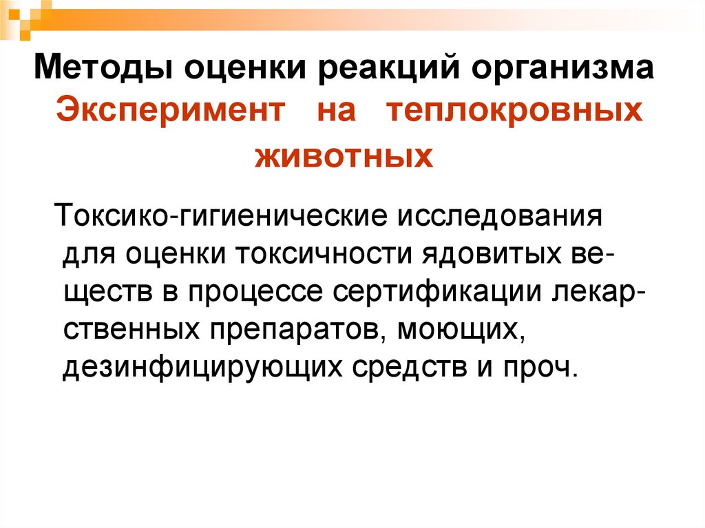22. Методы оценки реакций организма Эксперимент на теплокровных животных