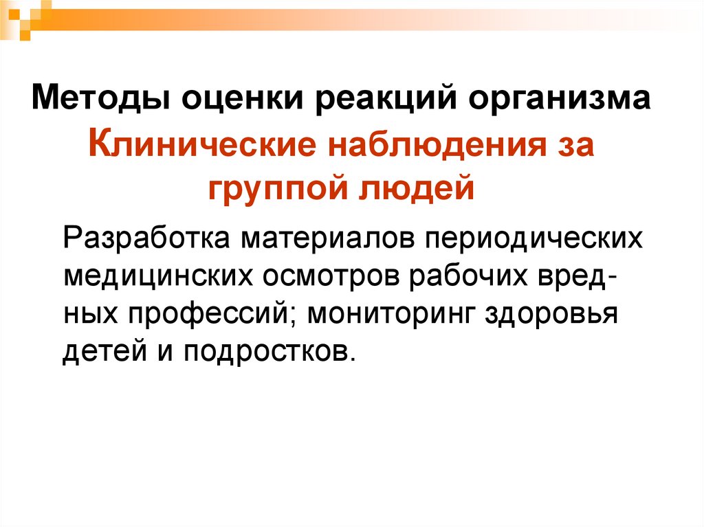 24. Методы оценки реакций организма Клинические наблюдения за группой людей