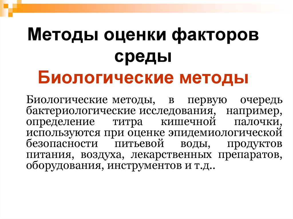 Биологические методы, в первую очередьбактериологические исследования, например,