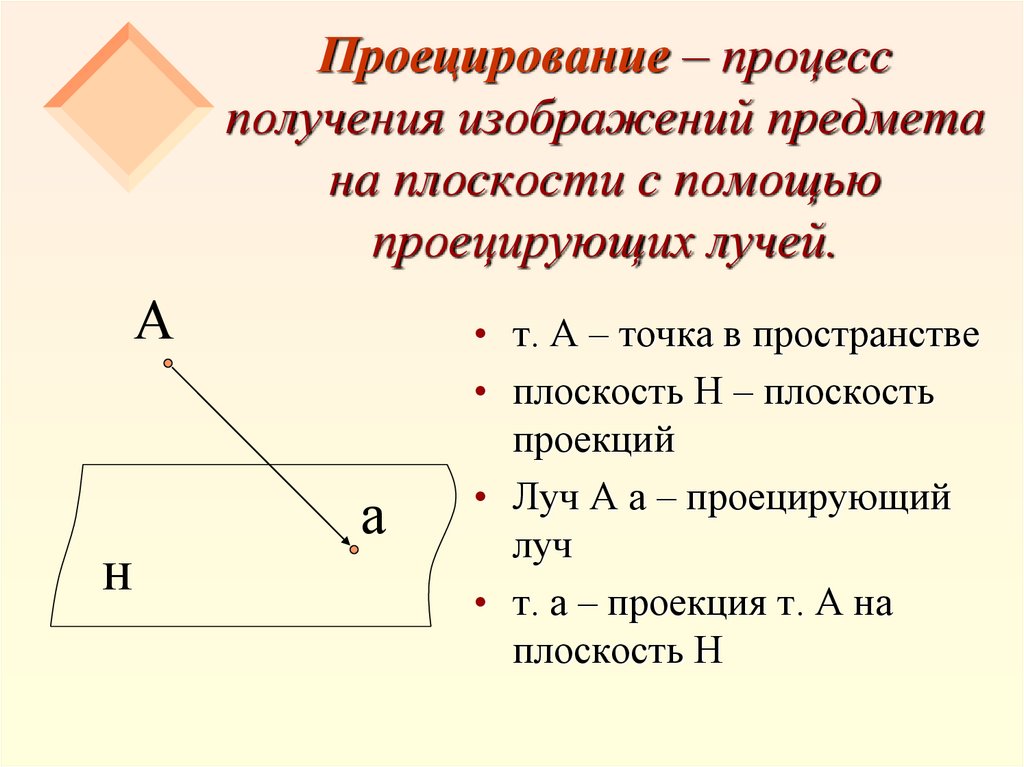 2. Проецирование – процесс получения изображений предмета на плоскости с помощью проецирующих лучей.