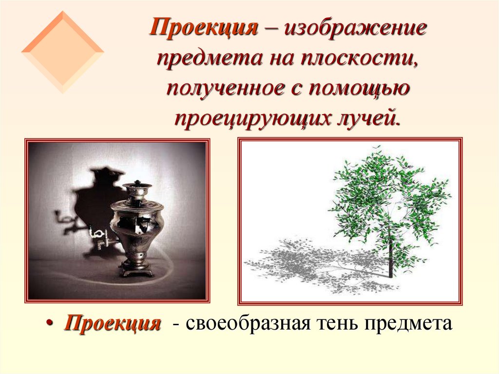 3. Проекция – изображение предмета на плоскости, полученное с помощью проецирующих лучей.