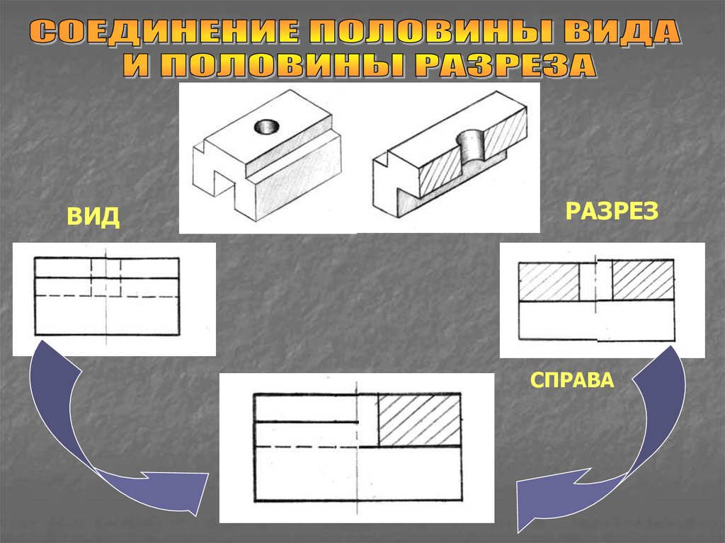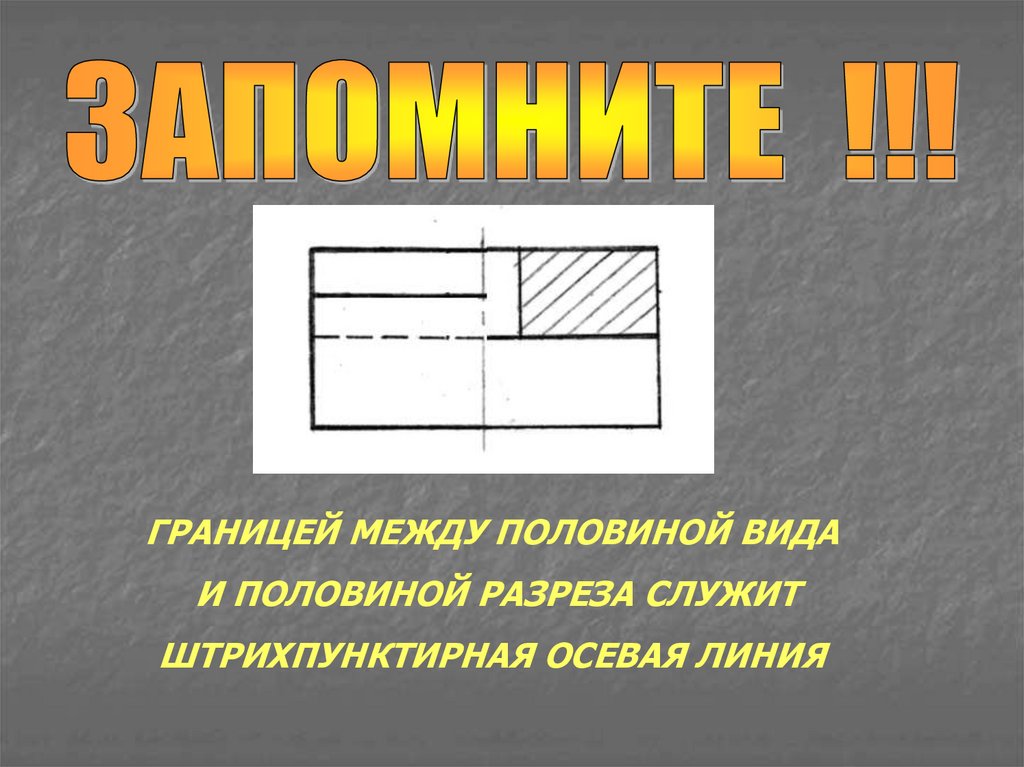 ГРАНИЦЕЙ МЕЖДУ ПОЛОВИНОЙ ВИДАИ ПОЛОВИНОЙ РАЗРЕЗА СЛУЖИТ