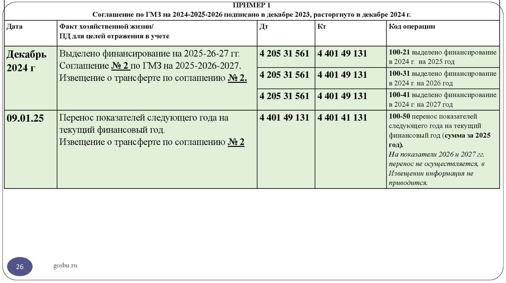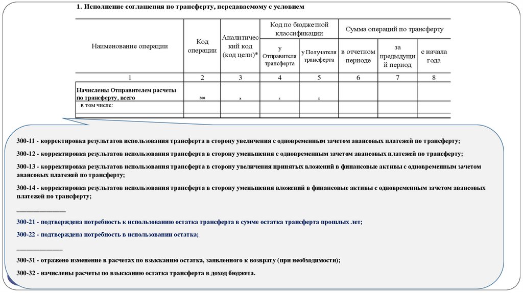 1. Исполнение соглашения по трансферту, передаваемому с условием